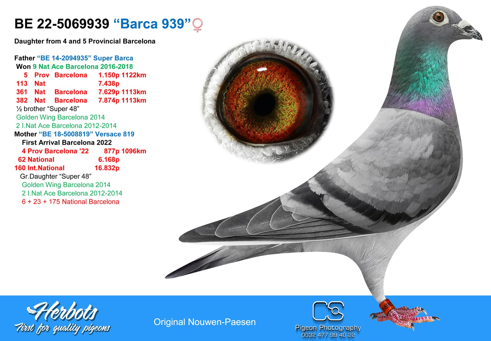 These are 2 daughters of “Super Barca” 5th Prov Barcelona 1.150p and 9th National Ace Pigeon Barcelona 2016-2018 coupled to “Versace 819” who was the 1st arrival on Barcelona in 2022 with 4th Provincial Barcelona 877p ( 62nd National 6.168p )