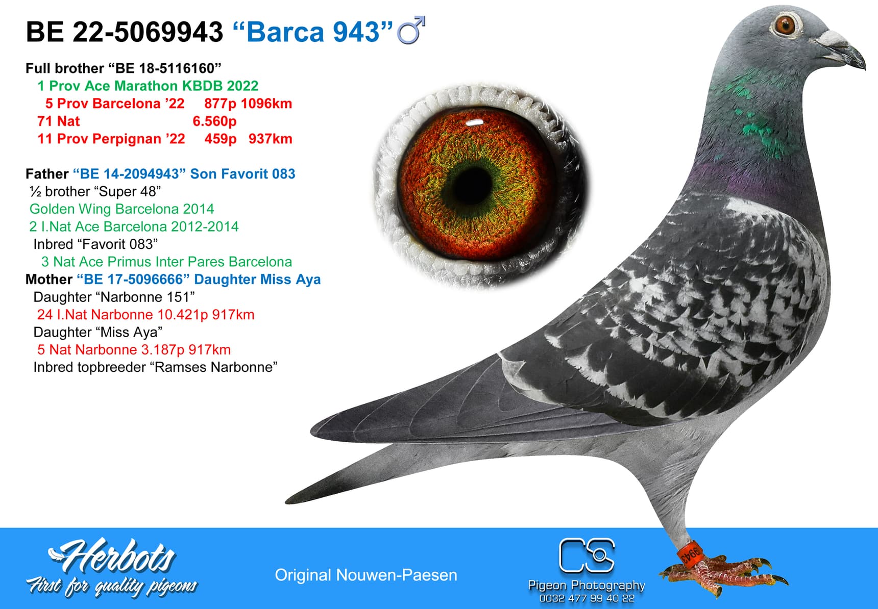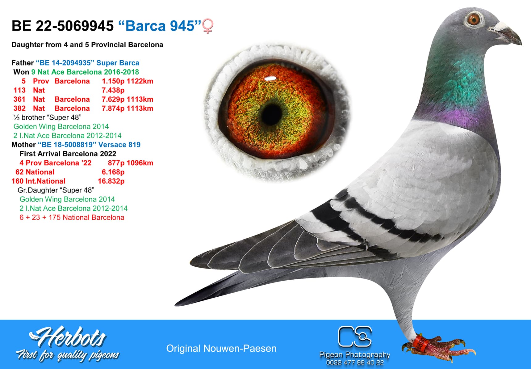 Granddaughter of “Super 48” who won 6th, 23rd and 175th National Barcelona and Golden Wing Brugse Barcelona Club in 2014.