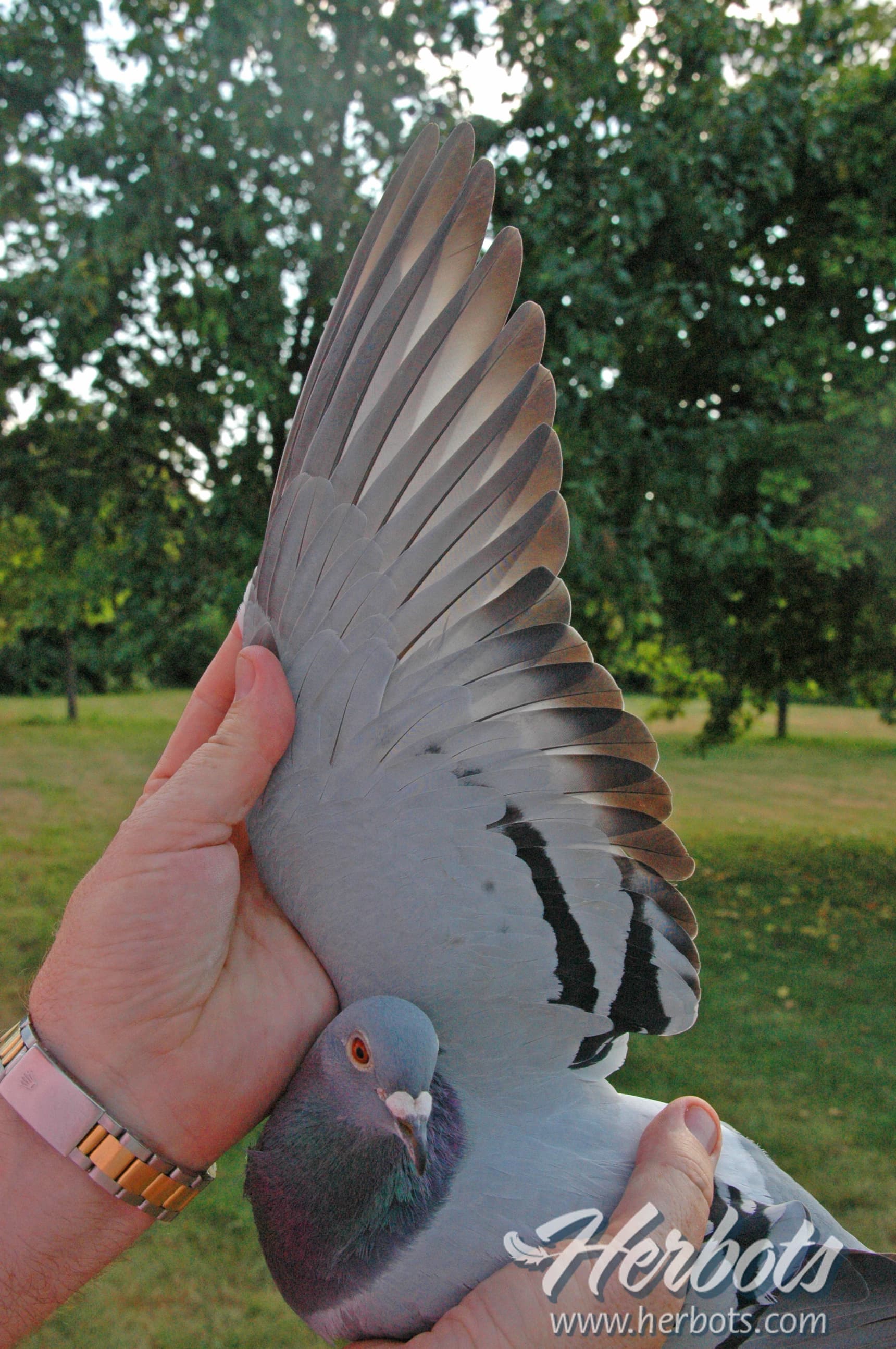 The national winner from Souillac is a marvellous blue hen. Average build, strong, super feathers and when we got to see her a few hours after the race she was already as round as a bullet again. She was in a matter of speaking ready to be basketed again. ‘This is thanks to the super condition that is on the loft at the moment but also thanks to the very good care of the companions in Souillac’ says Kurt ‘the pigeons from Souillac come home better than those from a middle distance race. When it is good, it can be said as well !’.