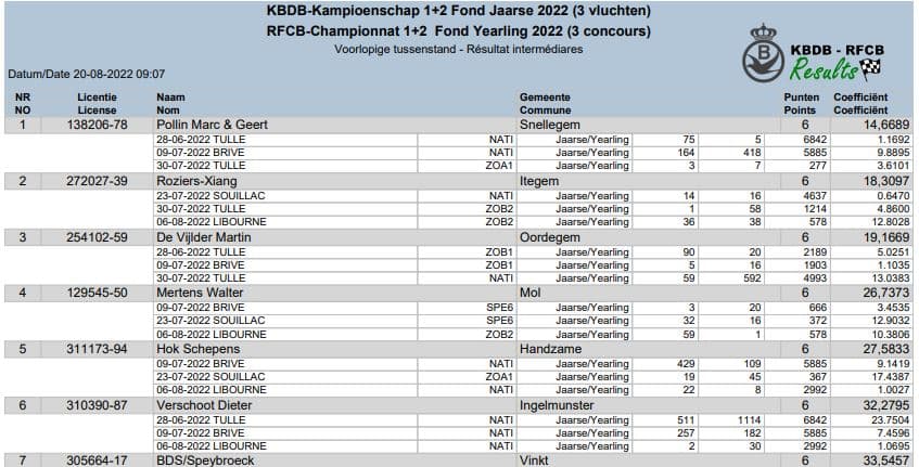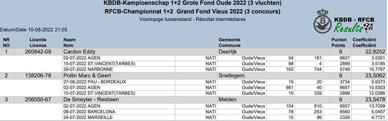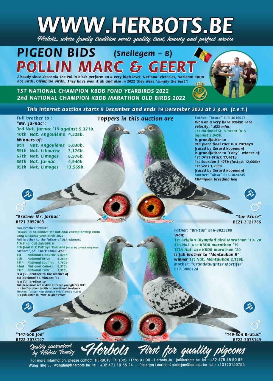 pollin marc and geert (snellegem) 1st national champion kbdb long-distance yearling 2022 2nd national champion kbdb middle distance old 2022