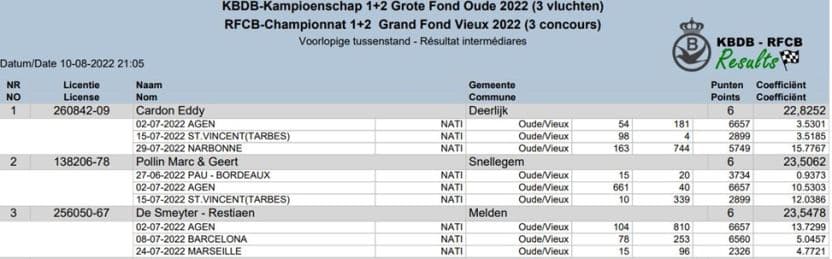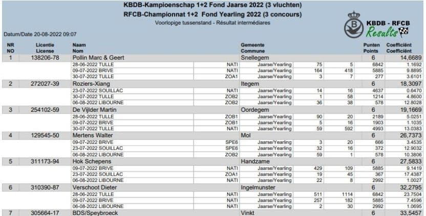 The clearest proof that "Michiel" was born into a winning family is the fact that his nest brother "B21-3052028" also achieved top results with his ring number.