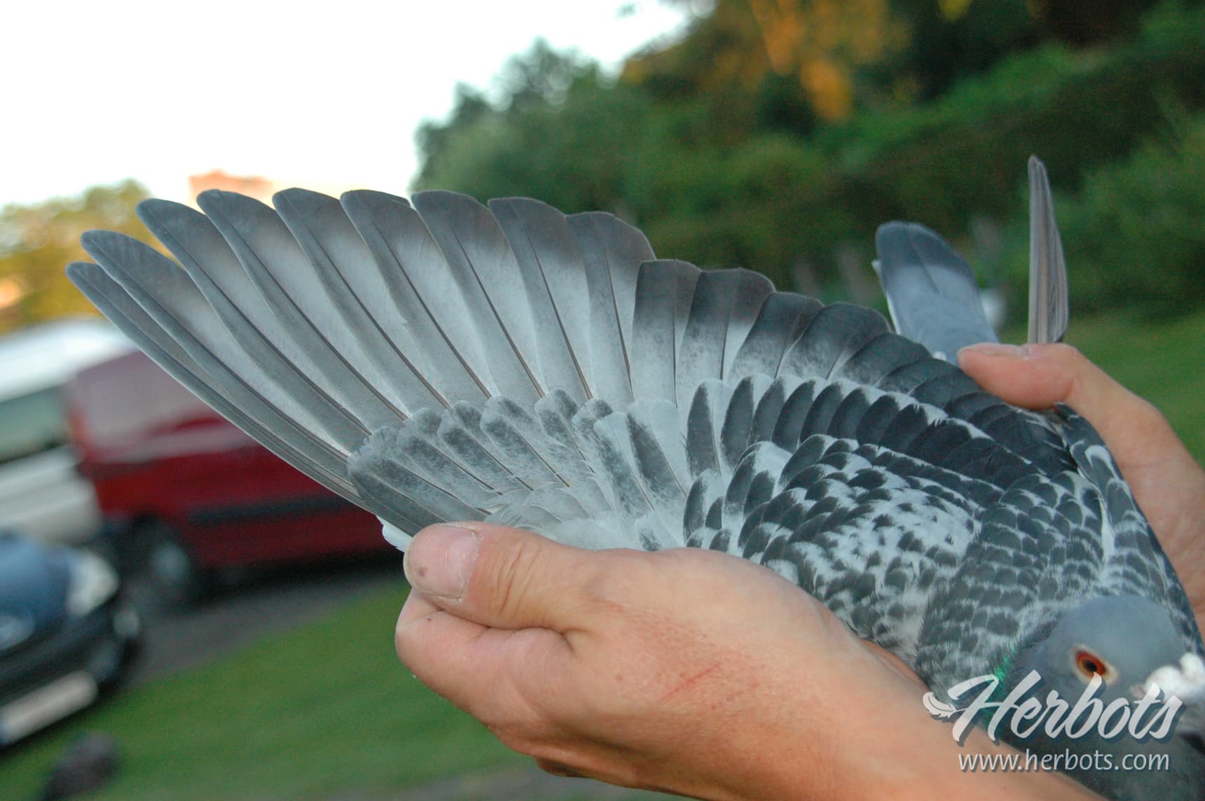The name Regnier is for many amongst us a known name as they are one of the first that have to register for a national race. Guy and Michel always have to be alert as they can’t count on the ‘KBDB-online’ registrations to see whether there are already pigeons called in. Also the national winner is one they saw arriving….an arrival they will never forget. The winner itself is a marvellous pigeon in your hand …of a smaller type, strong back and a very strong pigmented eye in a smart head. He had just thrown his first pin.