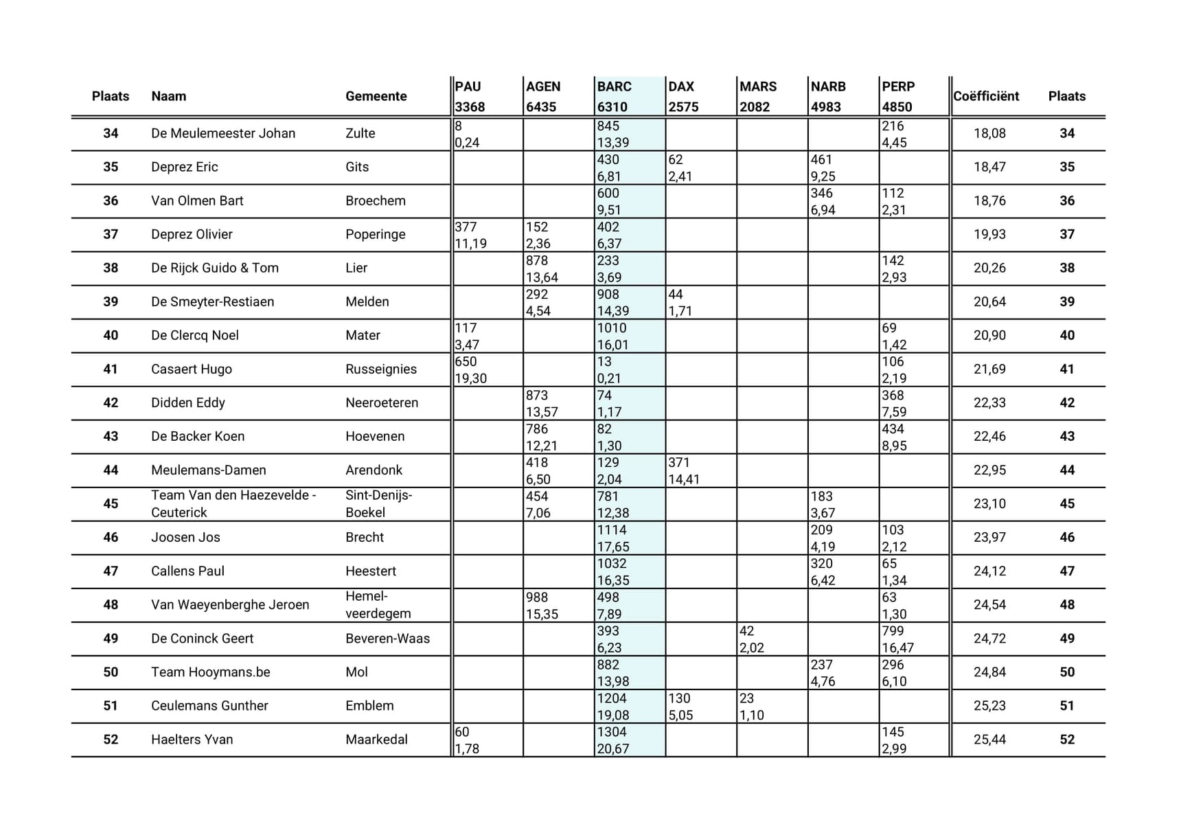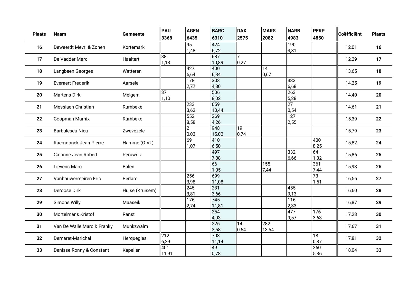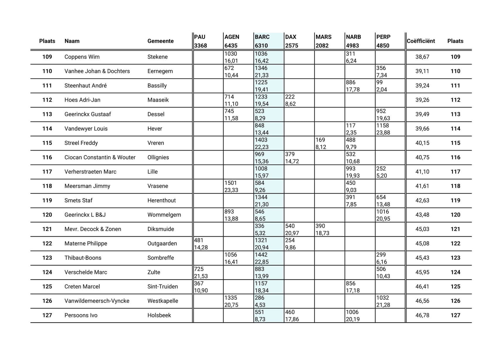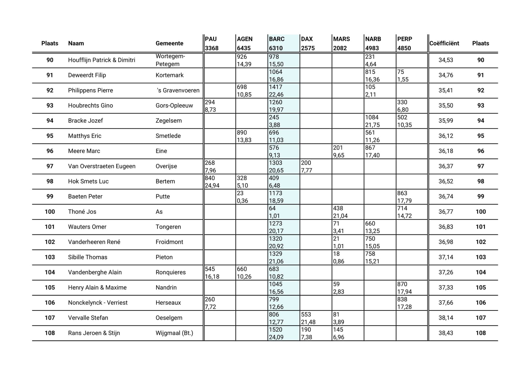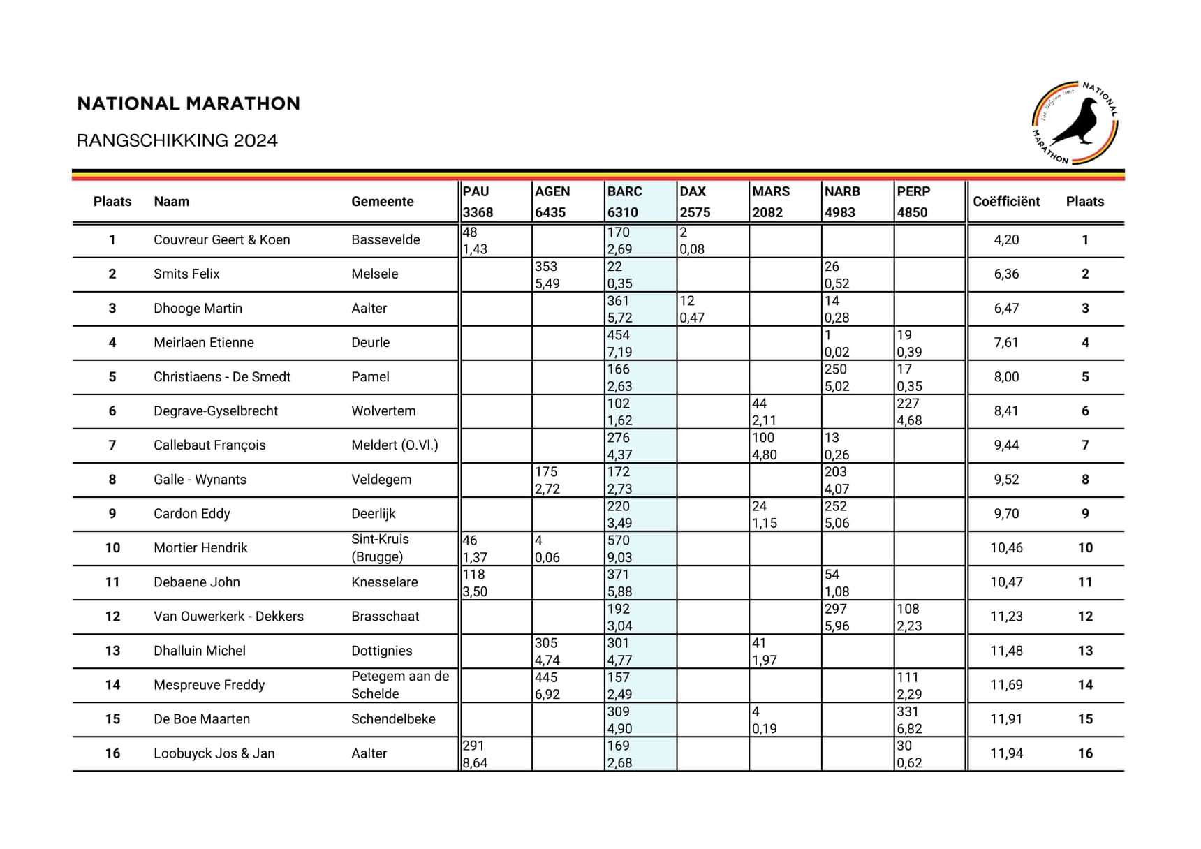 Result "National Marathon Belgium 2024" and Ace Pigeons '22-'24
