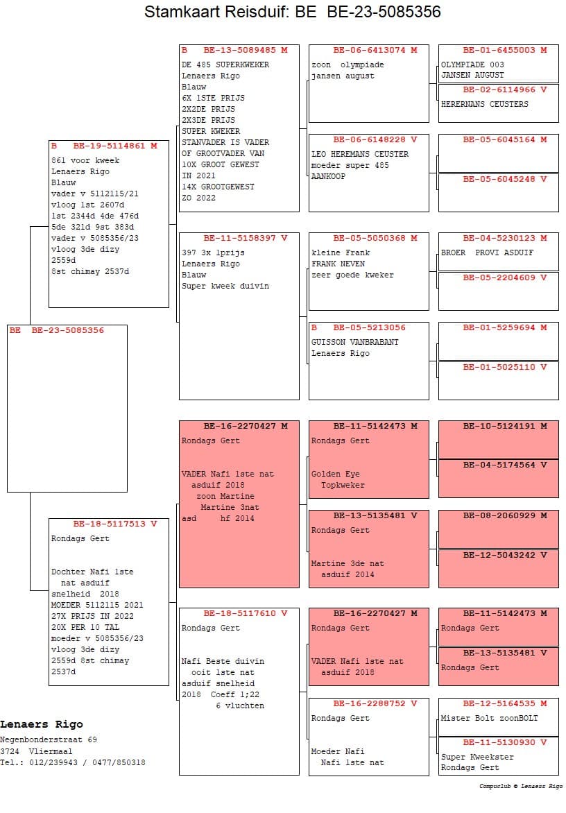 The season is a few weeks in and you can already see which lofts did not miss the start in several regional results. For Rigo Lenaers this is certainly not the case. His pigeons have started very strongly, only that first regional prize is still missing. But that will certainly come out more than once in the coming weeks. In general, the pigeons here have started fantastically across the board and there are again several toppers that come from his progenitor “Super 485” (Grandson Olympiade 003 Leo Heremans) in several generations and therefore provide the nice weather here.