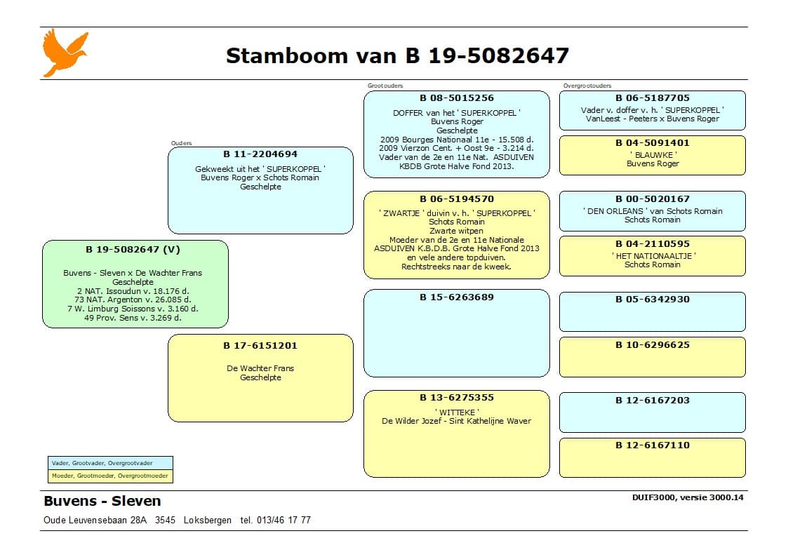 1st Provincial Melun 10,615b( fastest 18,719b ) and also the 8th National Ace bird MD KBDB '19 both on fathers' as on mothers' side are grandchildren to the '751' hen