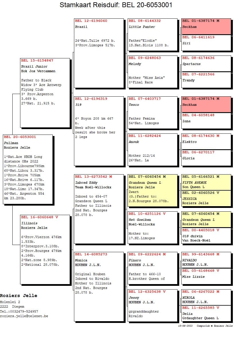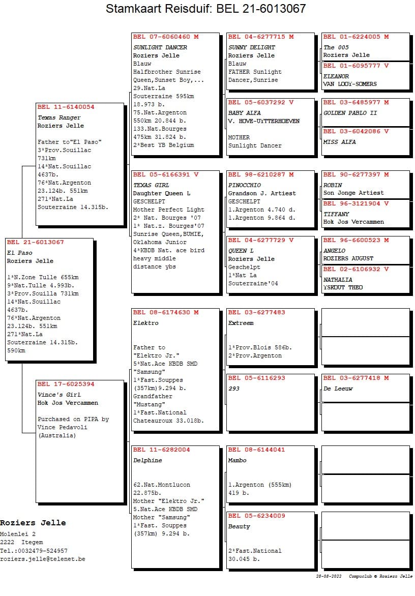 Daughter of “Pinnochio” JLN Houben won 1 Argenton 9,864p – 1 Argenton 4,710p x “Queen L” 1 Nat La Souterraine Stock mother Jelle Roziers