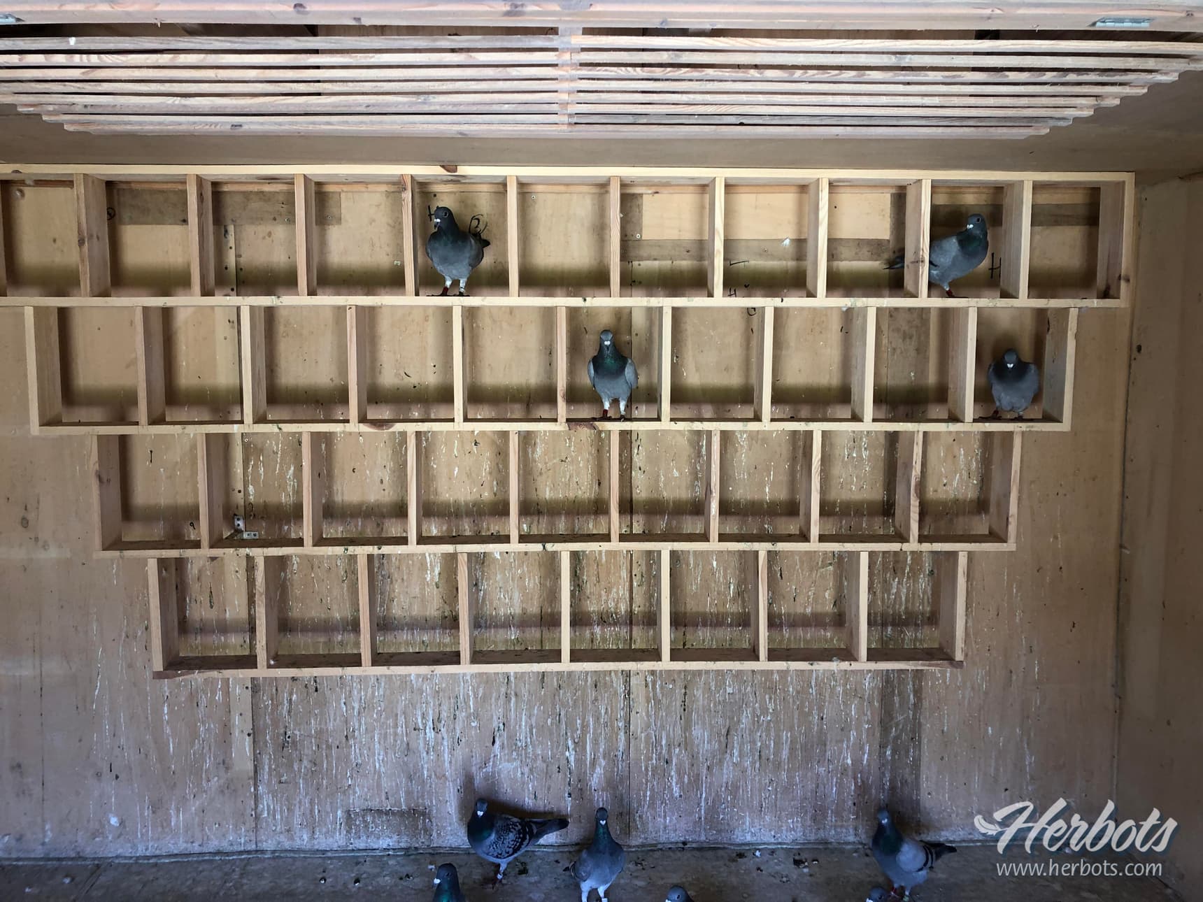 The racing hens will be a game of double widowhood from 2023, since there were more young cocks that Jelle wants to race. They will not breed in the winter period and will only see each other at the first flight and thus gradually form couples. The intention here will be that they will see each other in the national races on the morning of basketing for 2 to 3 hours and then separate again. Just like the widowers, they will be left together for a period the day after they return home. The hens are in aviaries that are completely screened off and sit on rollers on the floor. They are darkened from the beginning of March to the end of April from 7 pm to 8 am. They train once a day and by Wednesday in the season they will complete the hour again.