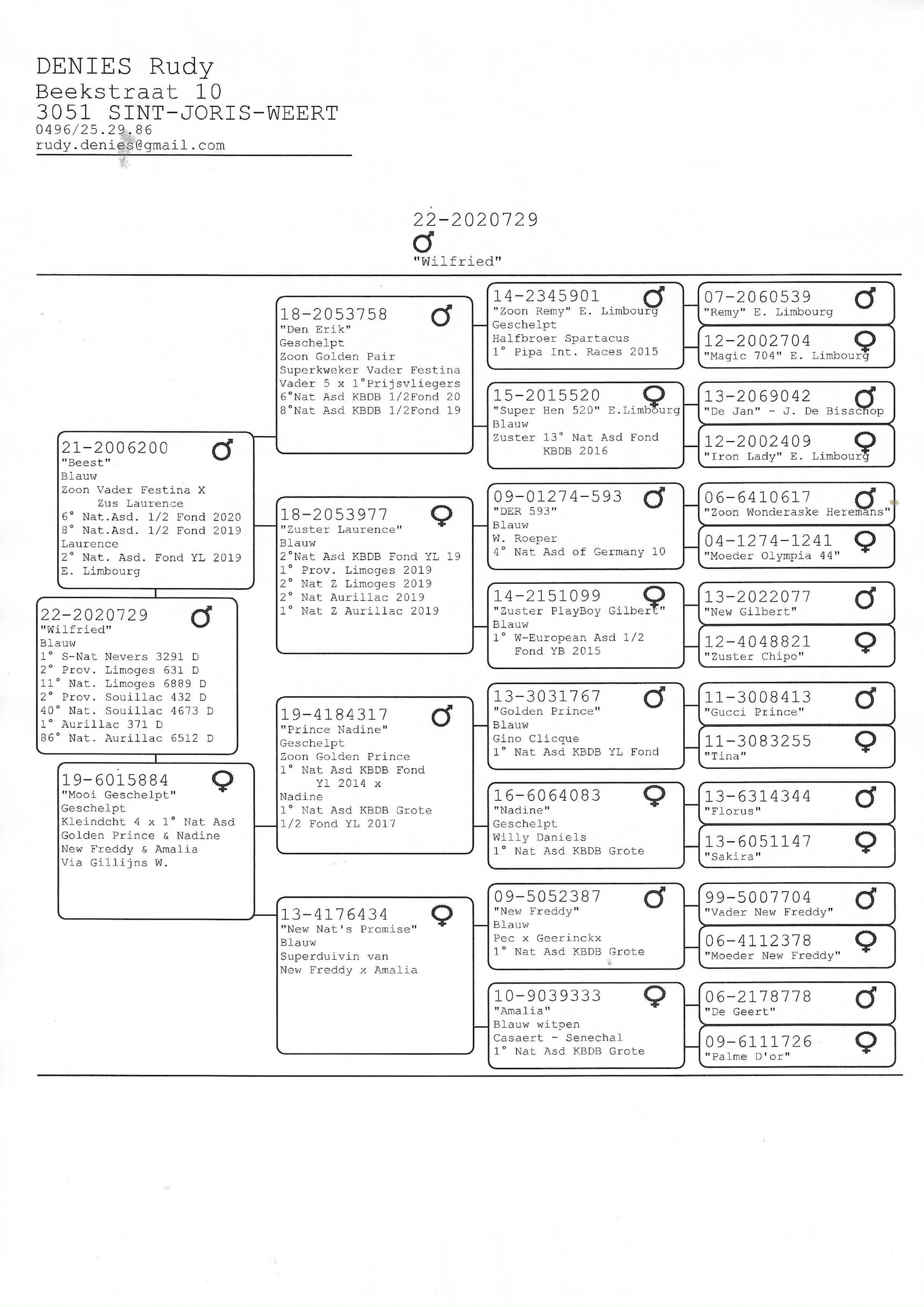 Daughter “593/09” Den 593 Wolfgang Roeper x “099/14” Sister Playboy Gilbert who won 1st West European Ace Young 2015