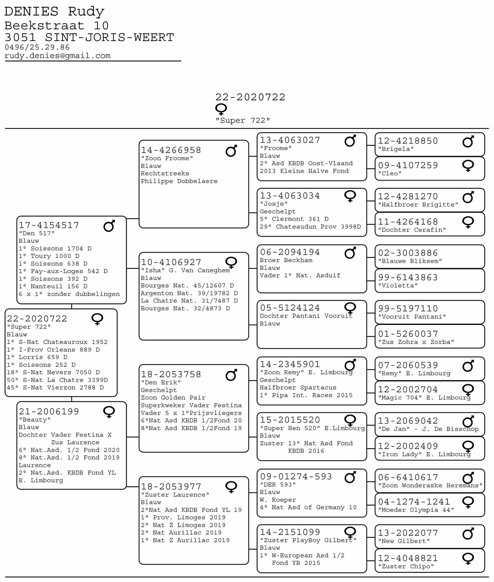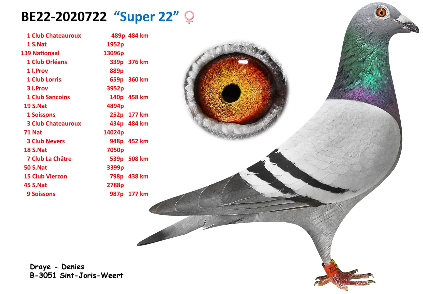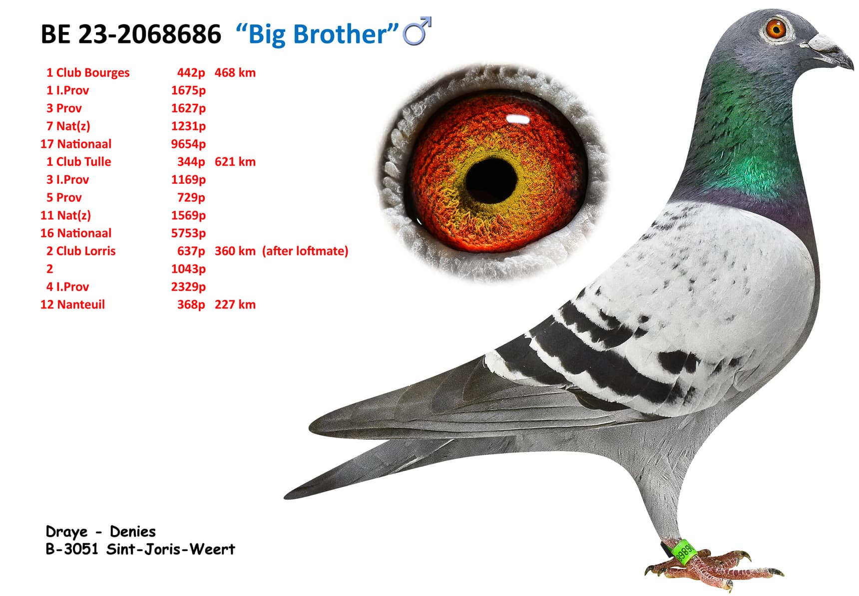 ½ sister of “Festina” ( same father ) 6 Nat Ace Pigeon Middle Distance KBDB 2020 + 8 Nat Ace Pigeon Middle Distance old KBDB 2019