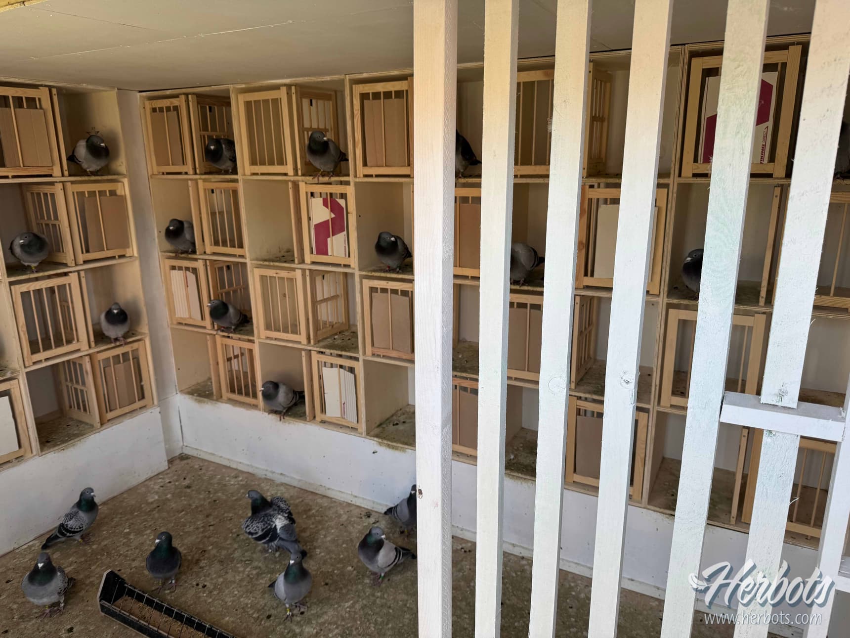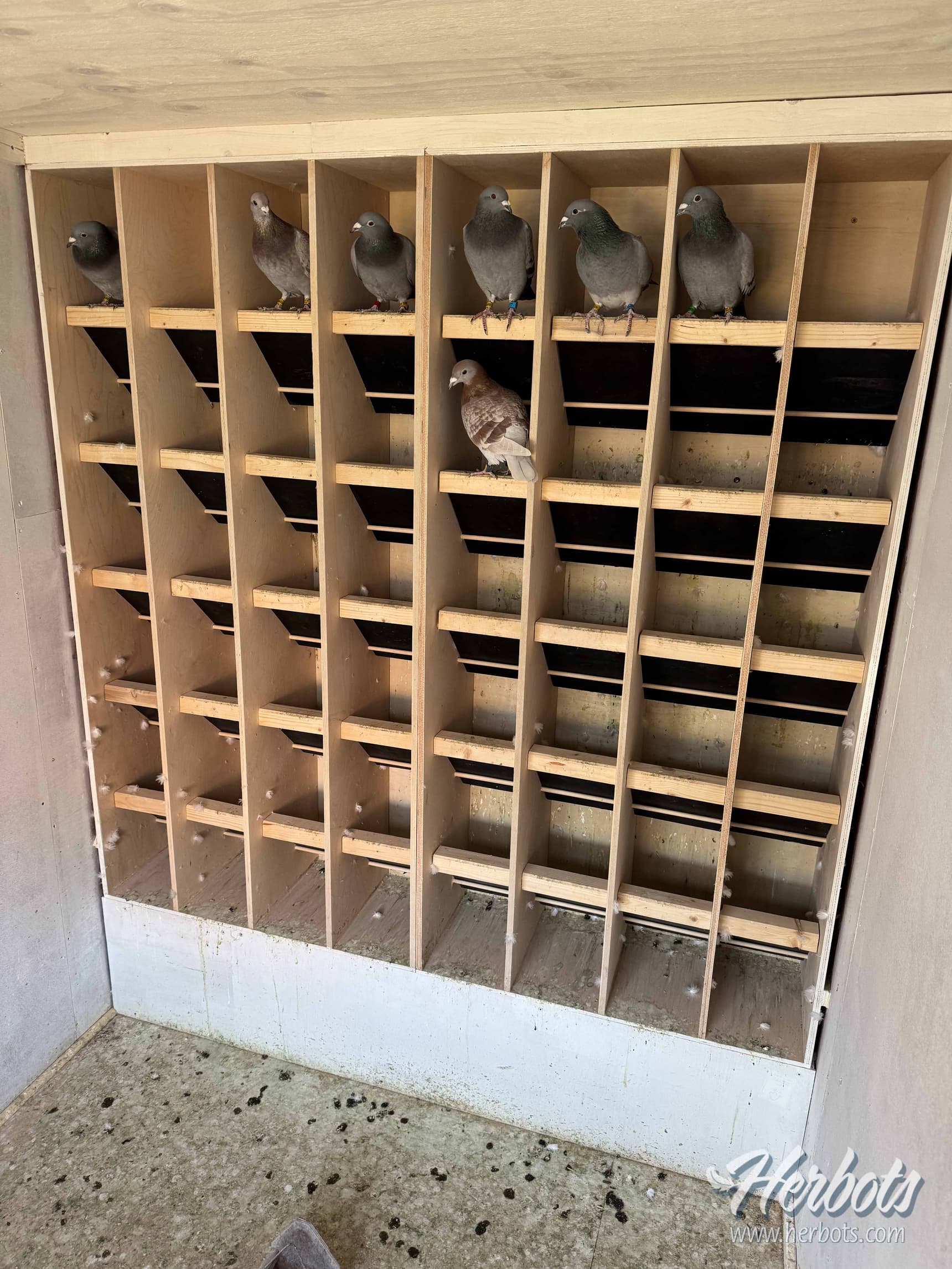 It is all new for our pigeons but 3 of our best old pigeons were sitting under each other in their old loft. Now in the new loft they have taken up these positions again with more boxes available and our favourite “De Wilfried” also took his same place. So you can see how important it is for a cock to find a box.