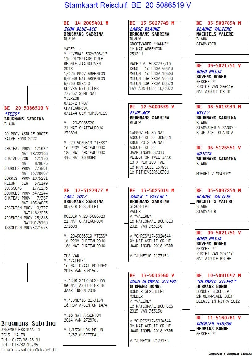 Son to “Blauwe Valère” Old base breeder x “Super 751” Roger Buvens