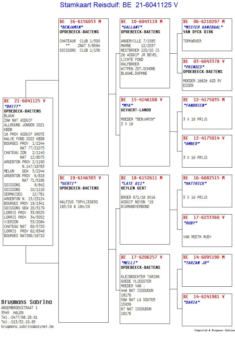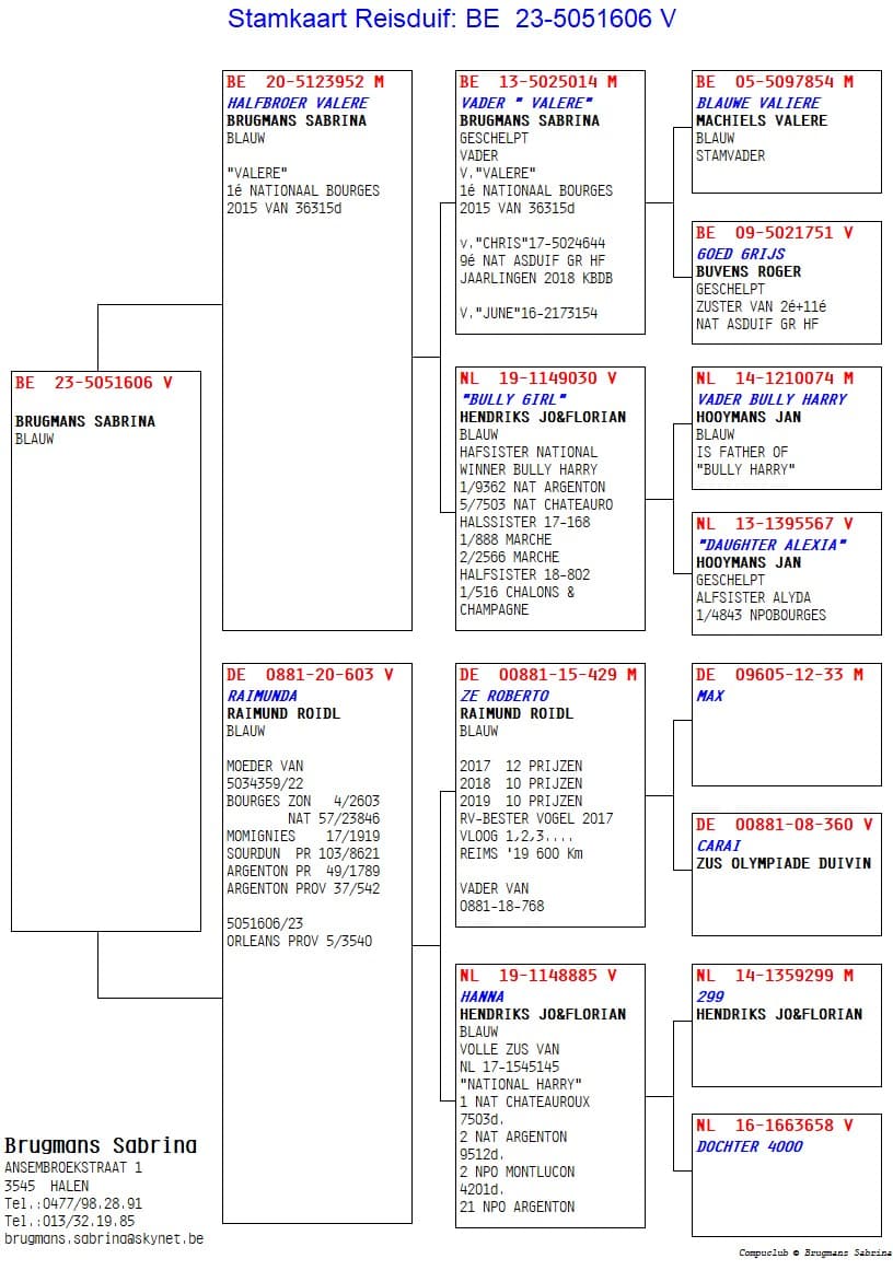 Son of “854/05” Blauwe Valère Stock father x “751/09” De 751 Hen Roger Buvens