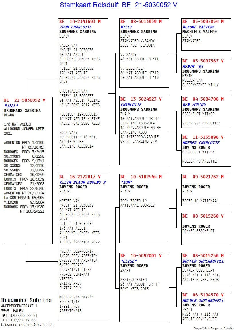 Let's go back for a moment to Argenton National youngsters in August 2021, when victorious "Hanne" from the Brugmans house won 1st National against 23,124 youngsters, but the "Britt" and "Jill" won 13th and 30th National. It was then a hard flight and they showed their talent. In the 2022 season, these hens excelled further and again from Argenton it was a hit. “Jill” then won 1st Provincial against 1,190 pigeons and “Britt” won 2nd Provincial in a race where the pigeons again only just reached 1200 m/min. At the end of the season, “Britt” was crowned 1st Prov Ace pigeon longer middle distance KBDB in the province of Limburg, but Stephan decided to race them both for another year. You have to go with the good ones, or rather with the supers, otherwise you can't win.