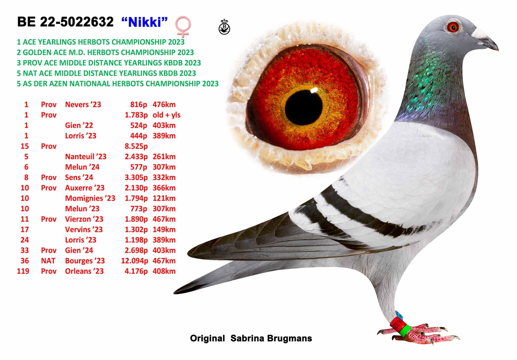 x “615/19” Olympic Louise 1 Nat Ace Pigeon middle distance KBDB 2020 – 1 Nat Olympiad Pigeon Cat.G Romania 2022.
