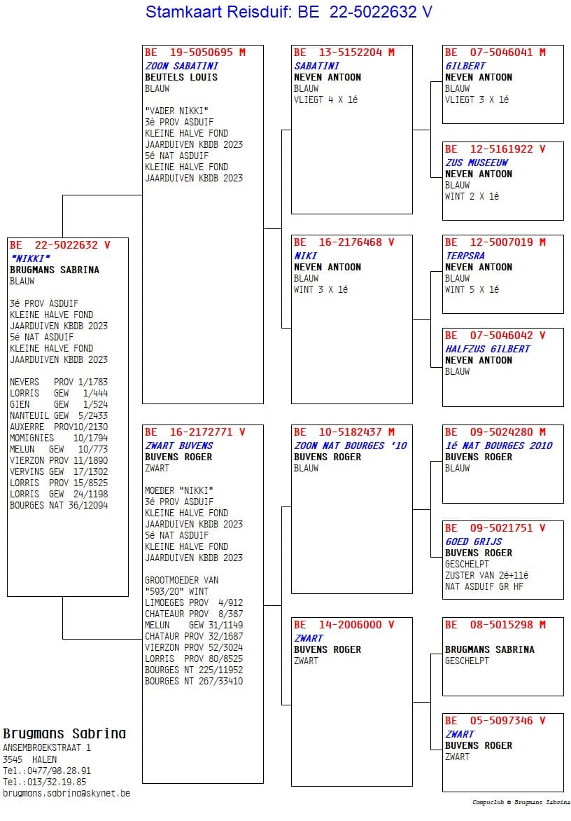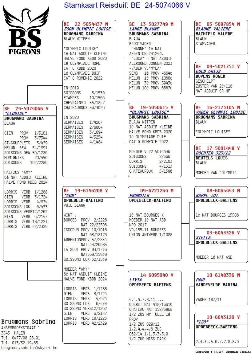 Son of “BE 07-041” Gilbert 3 x 1st x “BE 12-922” Sister Museeuw 2 x 1st