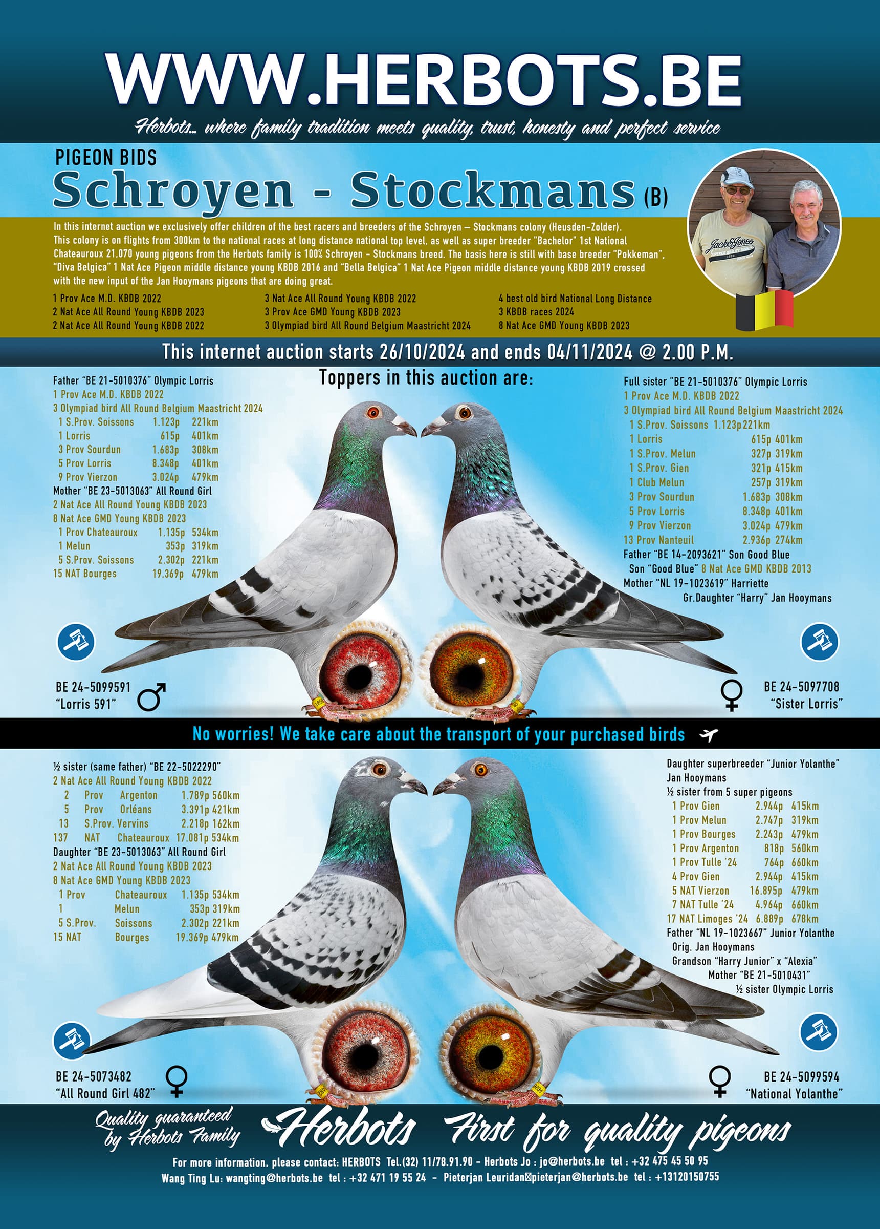 For the first time, this colony is holding an online auction via our website www.herbots.be from their very best racers and breeders, which you can find here.