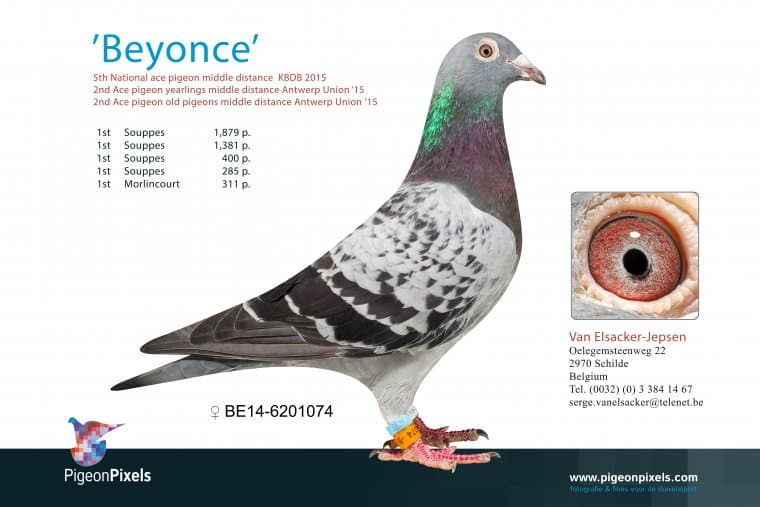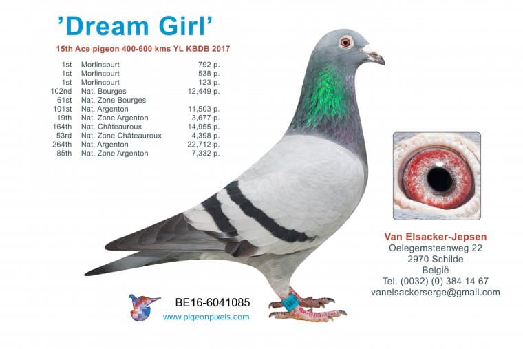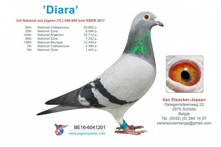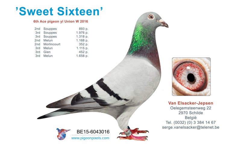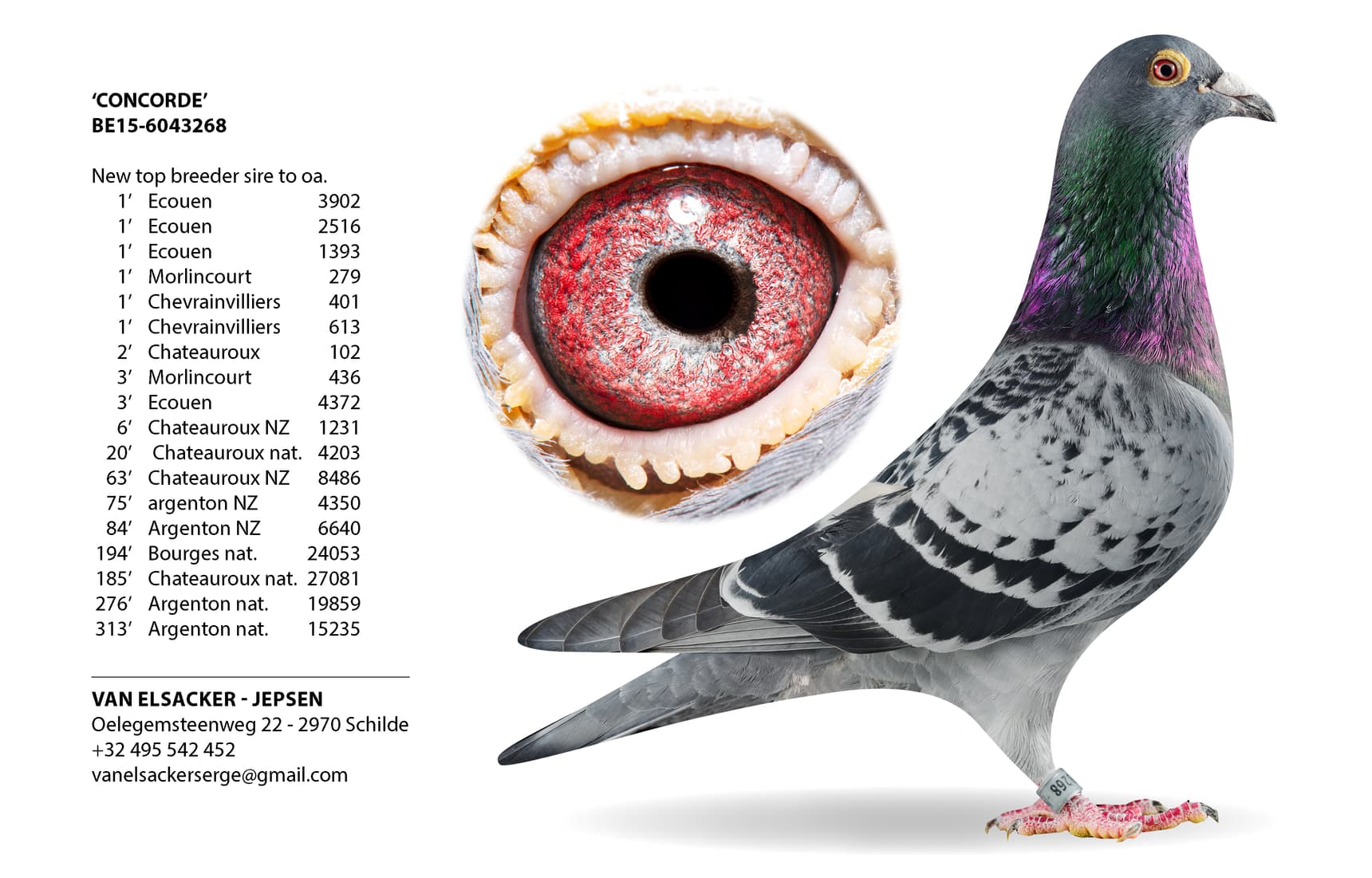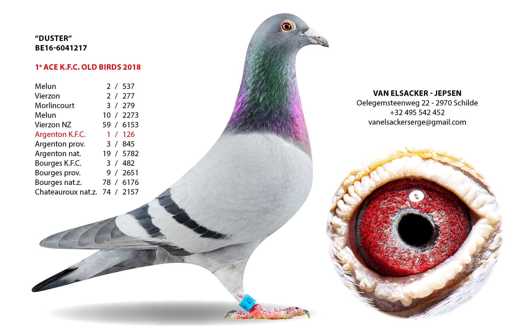 The title of this chapter describes in (very) short the construction of the current success pigeon of the tandem Vanelsacker-Jepsen. It is almost forty years ago but Serge Vanelsacker remembers it as if it was yesterday. He then bought a late youngster from René Michielsen. The youngster had especially the golden Meulemans blood in him and got the name "Wezel" pinned on it. Connected to "Blauwke Stoces" they became parents of the "23/84". This "23" became the determining factor in the further course of the pigeon career of Serge Vanelsacker and Kirsten Jepsen. The "23" became the father of six ace pigeons in the high school of Antwerp, the ”Union”. Also the two first Olympiad pigeons that had the tandem on the loft had his stamp. This fantastic breeding line was at that time crossed with the best of different top breeders. Serge created a family of pigeons that consisted of descendants of greats of that time; the brothers Janssen, Stoces, Meulemans, Hofkes and Louis De Leus. The last injection that kept the colony Vanelsacker-Jepsen on level or maybe lifted it one level higher were the Gaby Vandenabele pigeons. The first Dentergem gold ended up in Schilde via the Dutch champion Anton Ruitenberg. Also the Belgian stars Rik Cools, Rudi De Saer and Marnick De Neve were joined by Serge. They also have the luck (and the knowledge) to maybe have the pigeon breed of the twenty-second century on the loft; the Vandenabeele's! The best known pigeon of the Vandenabeele breed is undoubtedly the "Wittenbuik". Through Rik Cools Serge obtained a descendant of this legendary pigeon, his name is "Phantom". What the "Wittenbuik" meant for Gaby Vandenabeele is the "Phantom" of the same order for Serge Vanelsacker. "Phantom's genes are gold on the breeding loft. Meanwhile, he is already the father of several head kites. Speedy Gonzales", 2nd National Acepigeon half distance 2009 and 2nd Olympiad half distance 2010 is a son of him. At that time "Phantom" was paired with a hen of the "old" kind. Also "Beyonce" (5th Nat. ace 2015) and "Sweet Sixteen" (8th Nat. ace 2016) have the "Phantom" blood flowing in their veins. I'm sure Serge and Kirsten will think of their "Phantom" with pride later on.