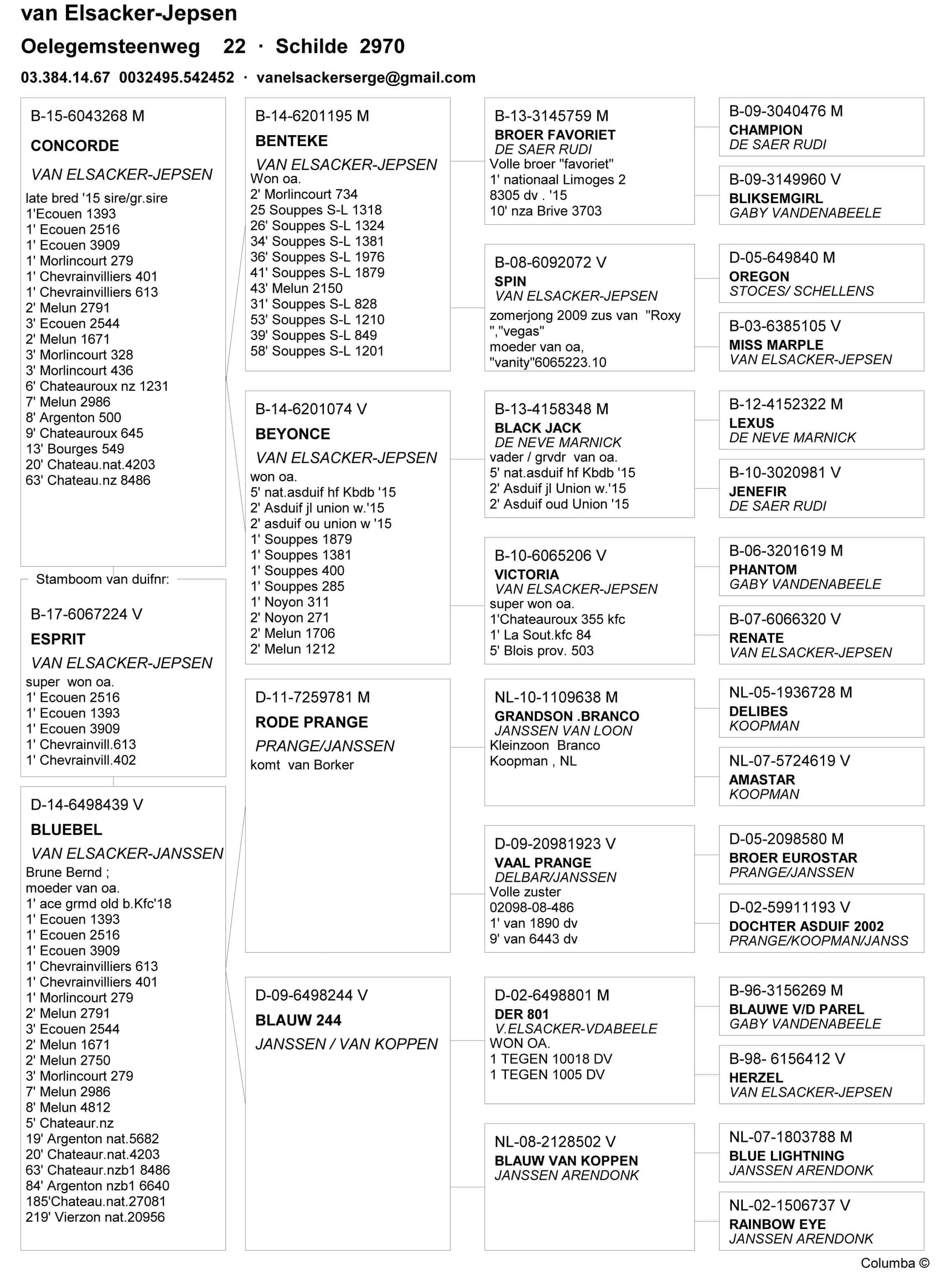 AT THIS MOMENT THERE IS A SUPERB INTERNET AUCTION OF PROVEN BREEDERS AND WELL SELECTED BIRDS OFFERED BY KIRSTEN & SERGE VAN ELSACKER-JEPSEN