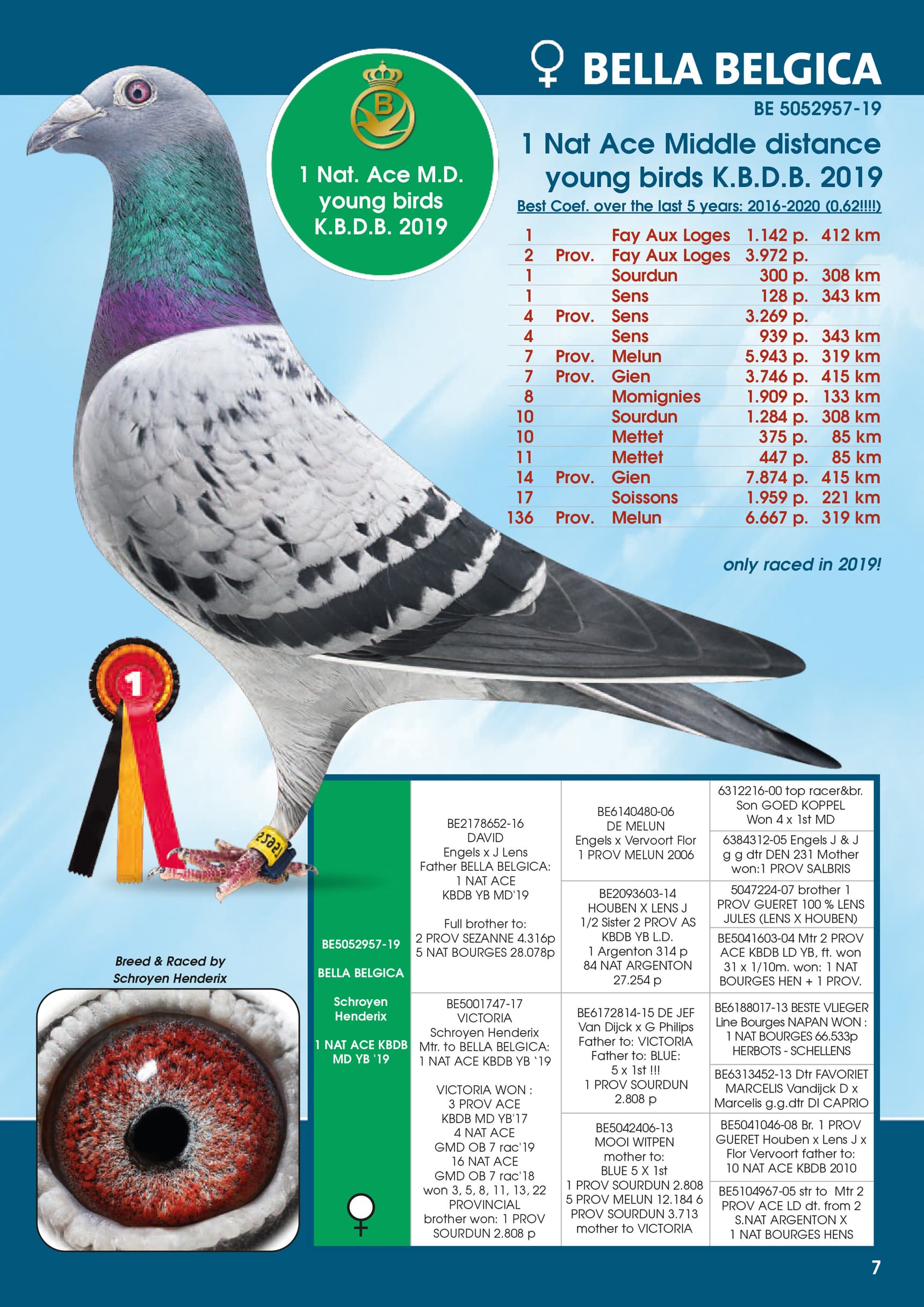 The grandmother is “BE 21-2140173”, this hen is an original Herbots pigeon and is a full sister of “Bella Belgica” who won 1st National Ace Pigeon middle distance middle distance KBDB 2019 at Schroyen – Stockmans.