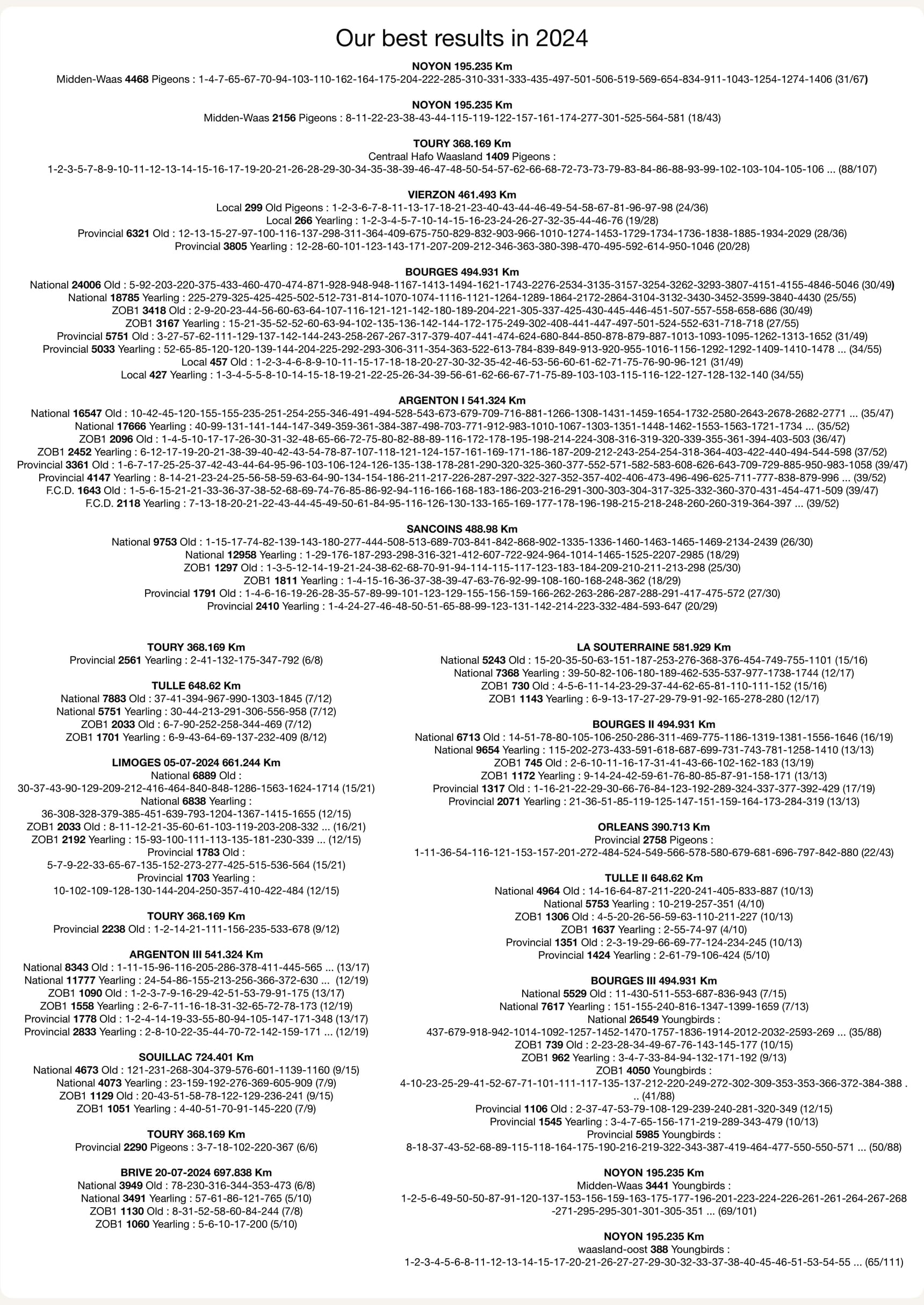 3rd Prov. ace pigeon KBDB All-round young pigeons - 4th Prov. Chateauroux 1,817d. - 40th National 13,852b. - 10th Provincial Orleans 5,949b. - 42nd Provincial Bourges 4,988b.
