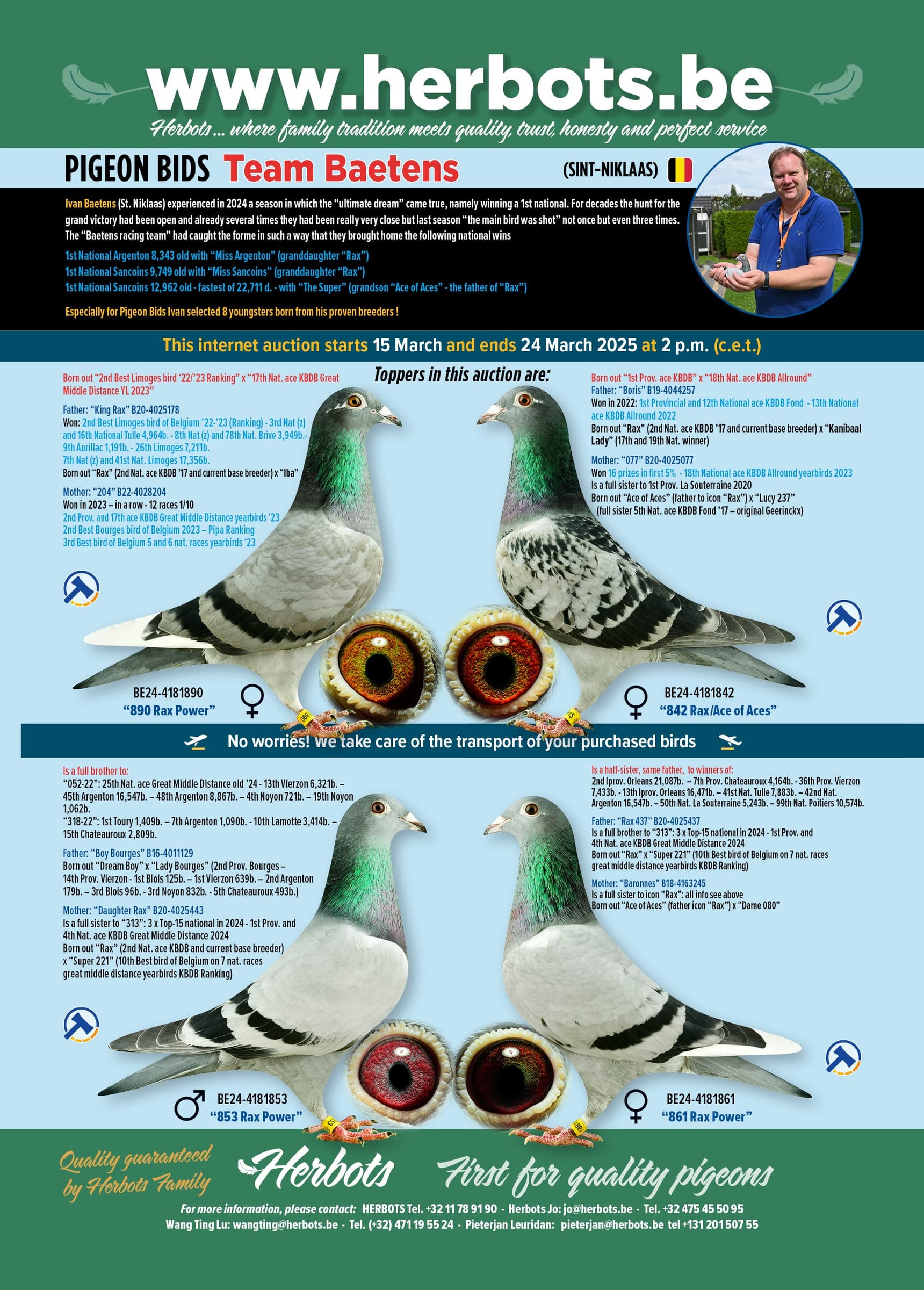 team baetens (temse) super successful with the golden breeding lines of “rax”.