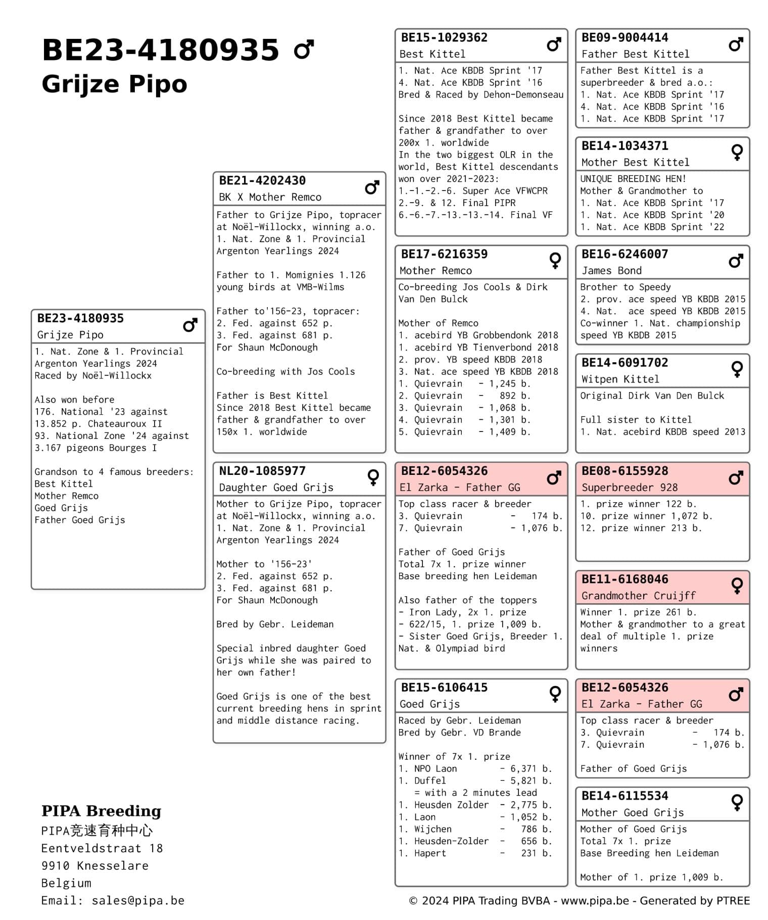 Direct PIPA Breeding - grandson of iconic pigeons: Best Kittel, Goed Grijs, Vader Good Grijs en Moeder Remco