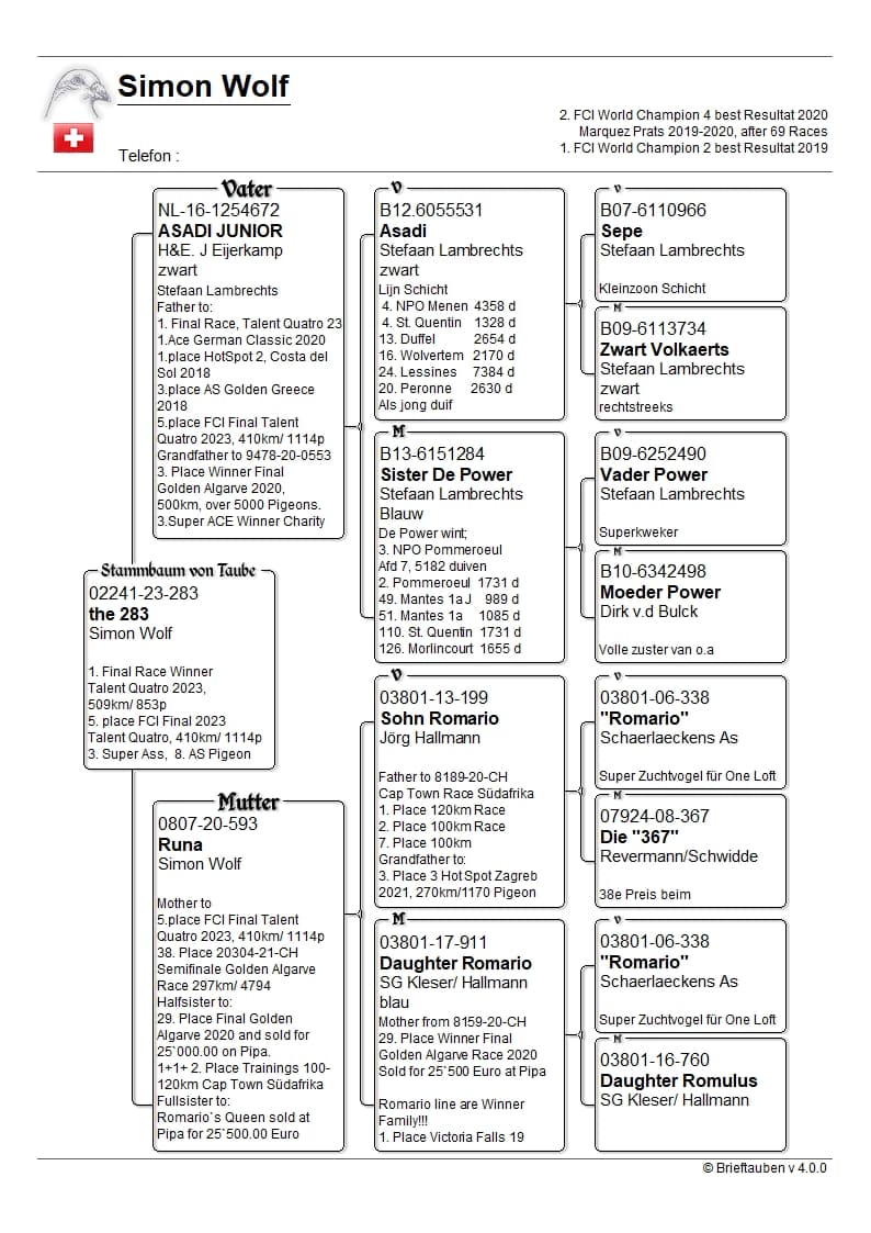 The 283 is also 3rd Super ASS pigeon and helped to win the National CUP for Switzerland.
