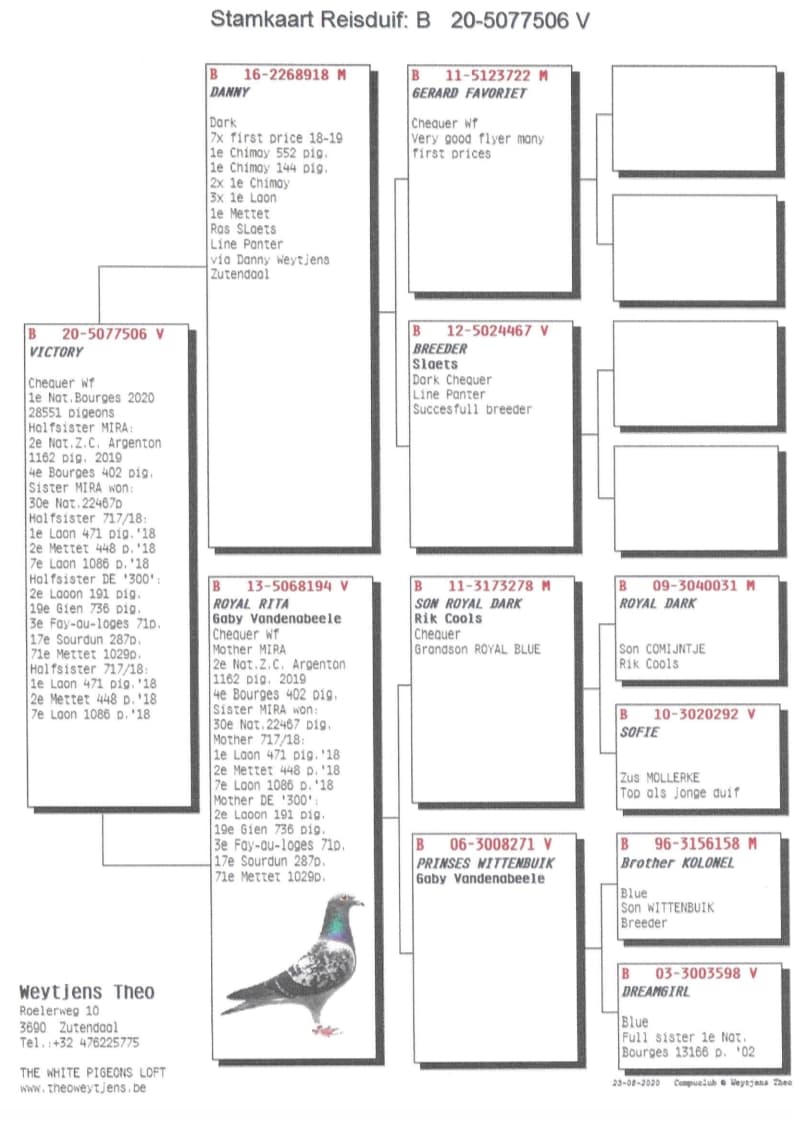 After Bourges was being postponed for 14 days we finally got the classic for young birds on Saturday 22nd of August, without old and yearling birds it became a different race for our youngsters. The winner lives in the province of Limburg in Zutendaal, the home of Theo Weytjens that is situated in an oases of peace and where the pigeons can enjoy this quiet and peace as well. For Theo it was the icing on the cake after many top results the past few weeks (3x 1st in the Region).