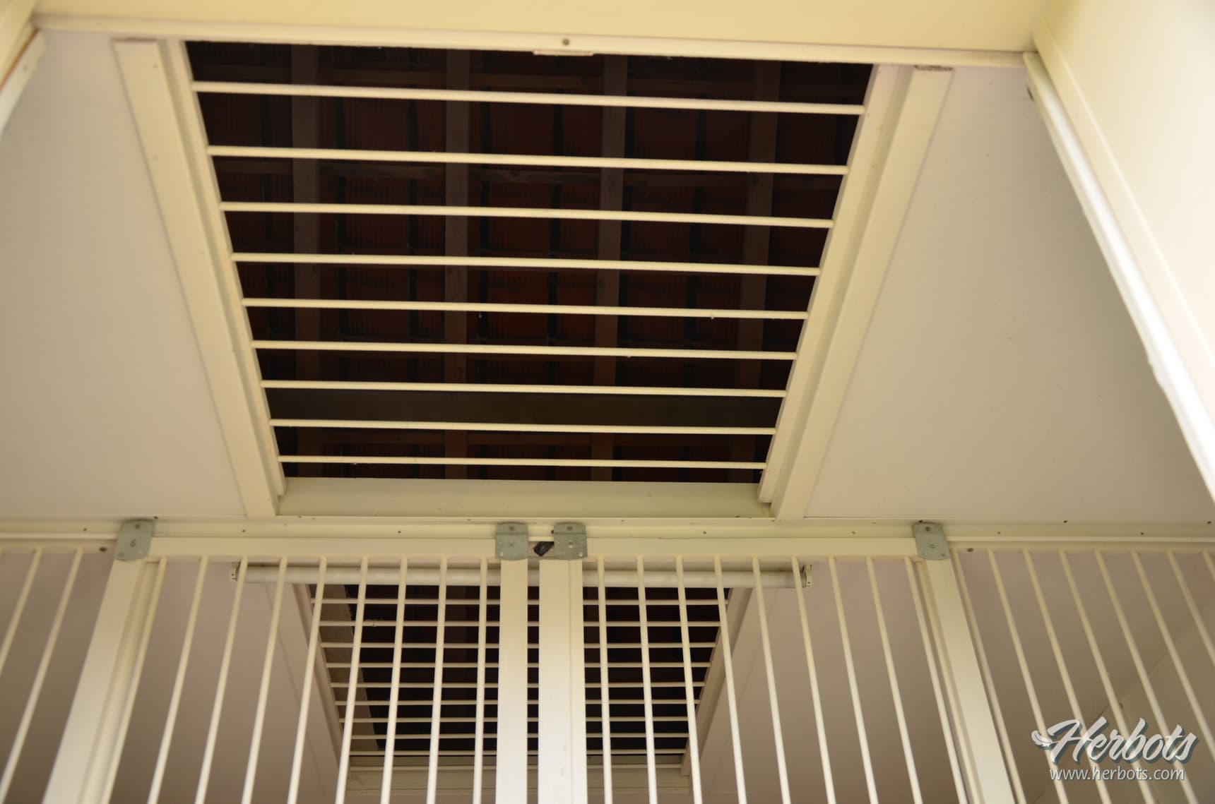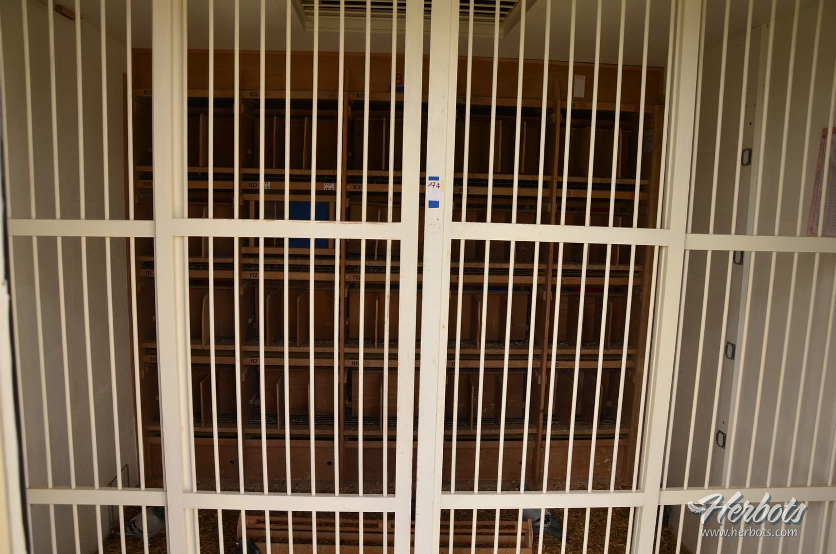 For everyone it is always a search for a good ventilation, here they have a big saddle roof with very little ventilation so there is always one shelf open in the hallway. In front of the hallway, the outside doors are almost open all the time and the aviaries are situated at the back of the loft. The pigeons can choose themselves where they want to sit. Around 19h00 all the doors will be closed and the pigeons can then choose a sleeping place.