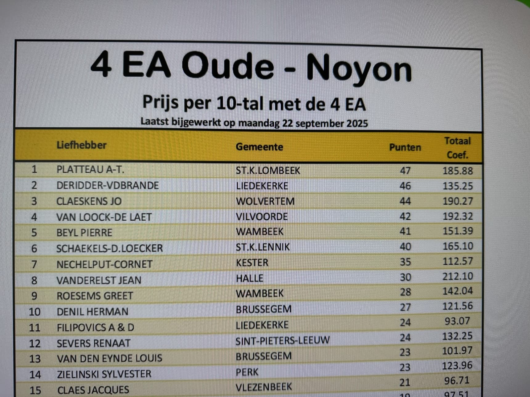 In other words… the battle is fierce every week. When the number of victories was calculated at the end of September, the twin brothers couldn't believe their eyes. To be sure it was correct, a new battery was put in the calculator and the total was redone... 81 victories! Granted, the doubles of the overall results were also included, but those are victories too! It's not logical that if you clock first place locally, you'll also win the top prize when the results from other clubs are added. On the contrary... it commands respect when you also come out on top against stiff competition.