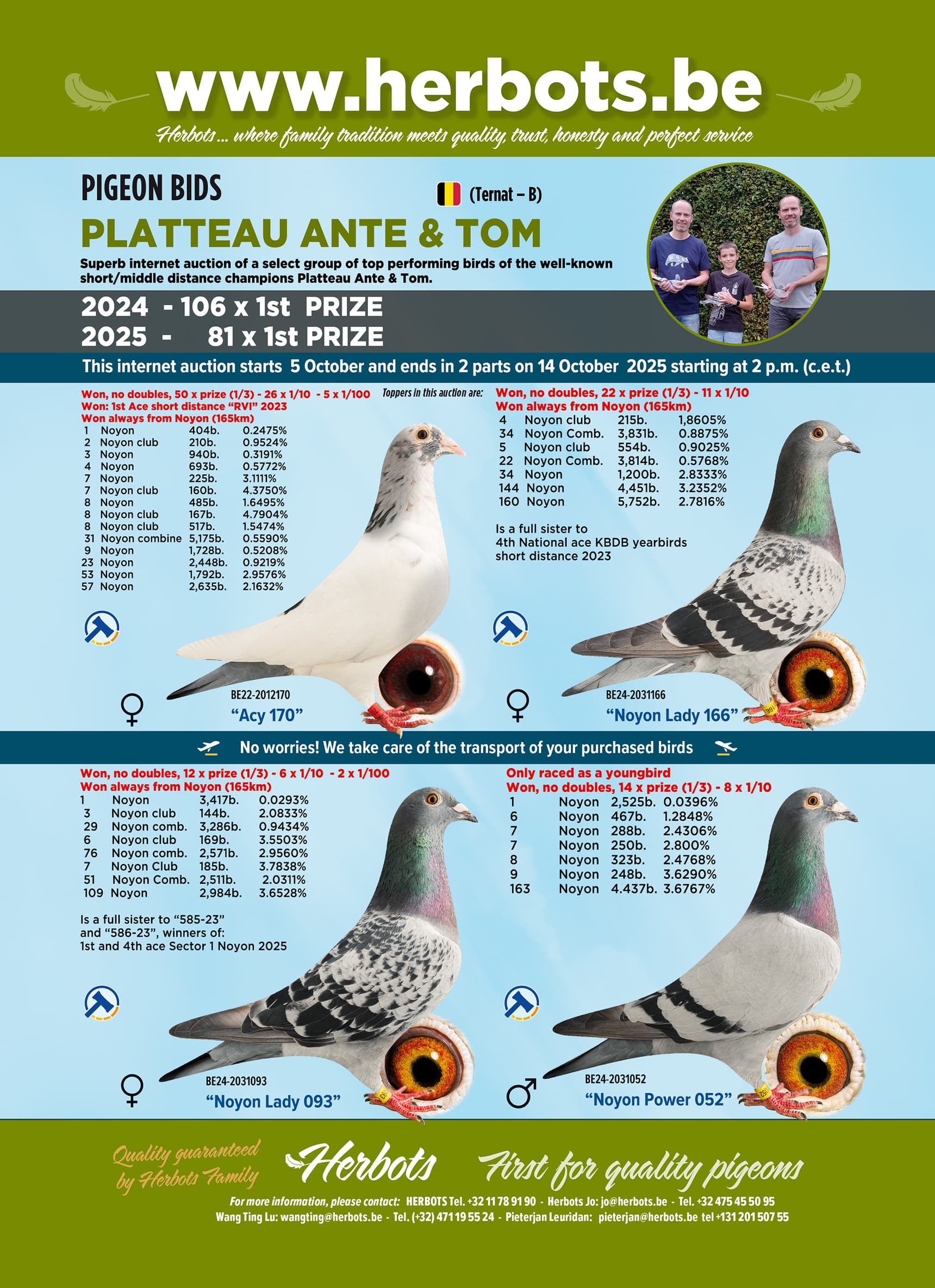 Platteau Ante and Tom… they're practically winning first prizes like it's nothing. Not a weekend, or rather, almost no race, goes by without the ring number of some Platteau pigeon being placed behind the first place. We said it last year, and we'll say it again with a certain admiration in our voices: "What a pleasure it must be to be able to race with the pigeons like that. They are, and they simply remain, the "Wizards of St. Catherine Lombeek."