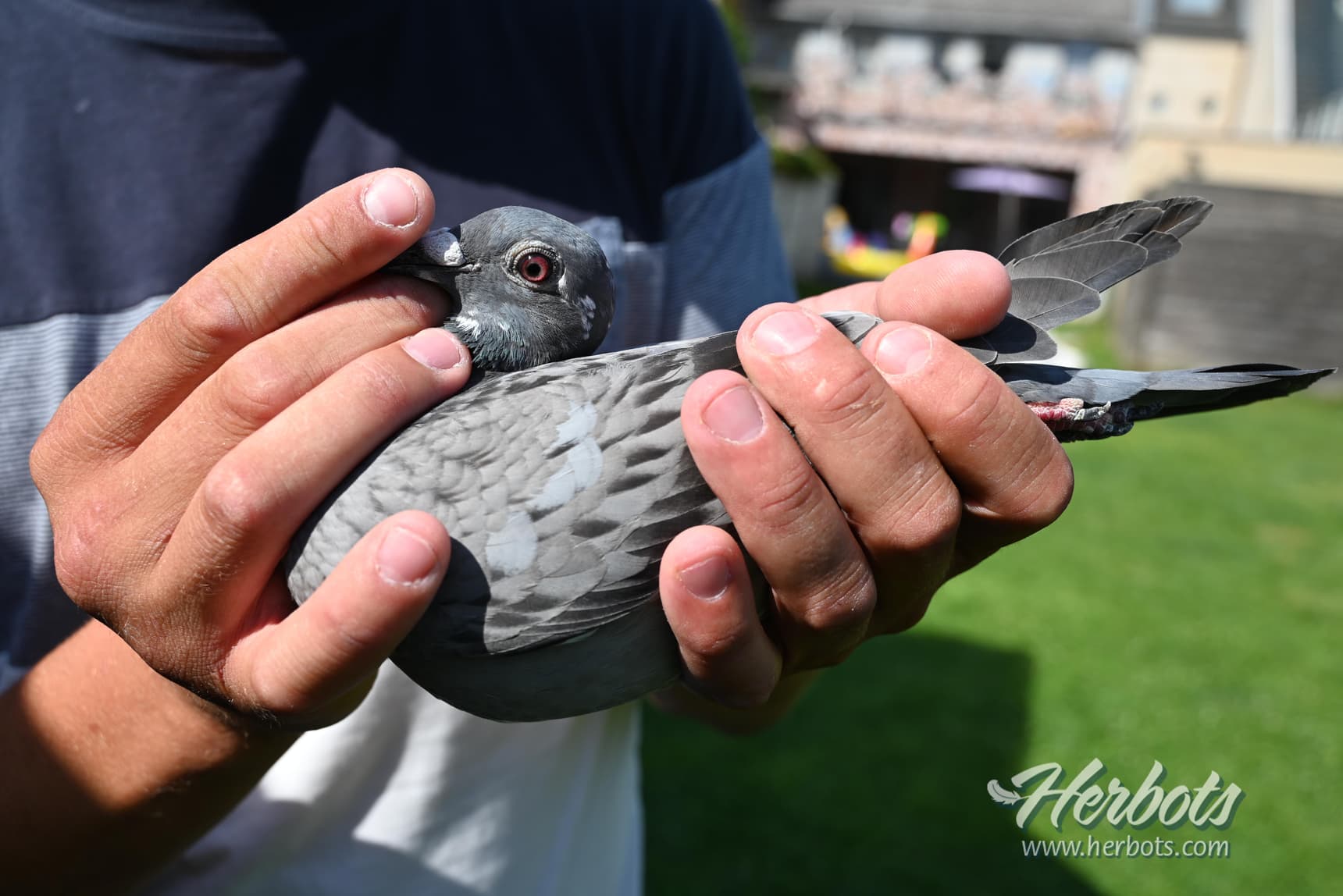 Whether my winner was specially motivated? Yes and no... she was one of the only hens that was really paired well before they were separated. Even more, she was the only hen that had laid. After their 2nd flight from Noyon, they were separated and the young hens are now in the same aviary as the old and yearling hens that are doing their last races on widowhood. The fact that she is no longer in her familiar loft, might have stimulated her. I have seen her arrive...straight from the direction...not one centimetre wrong. Goose bump moment."
