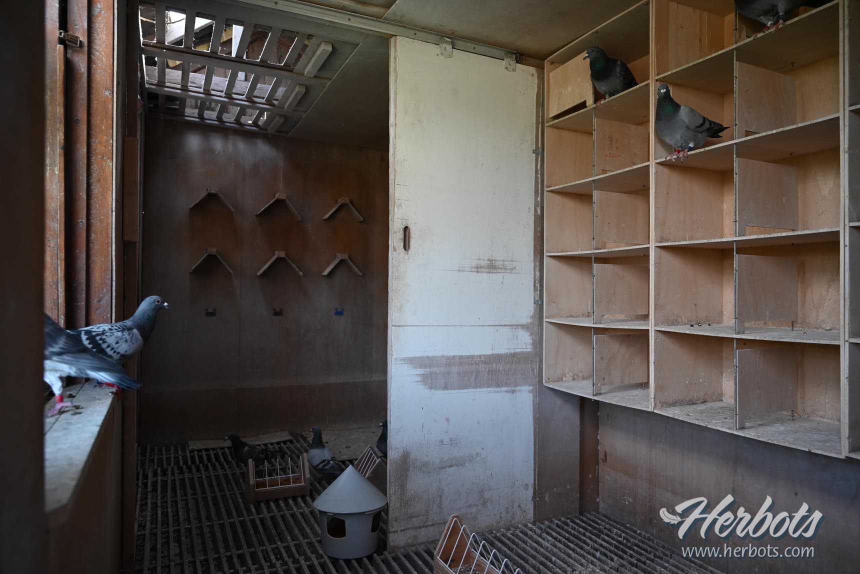 After their 2nd speed race, the cocks stay in the youngsters loft and the young hens move to the adjacent aviary where the old and yearling birds are also staying. The first week it is a bit of a struggle to get the young hens in line but after a few days of swearing they will be fine. A big advantage of this system is that they already get to know the system that is used as old and yearling pigeons.