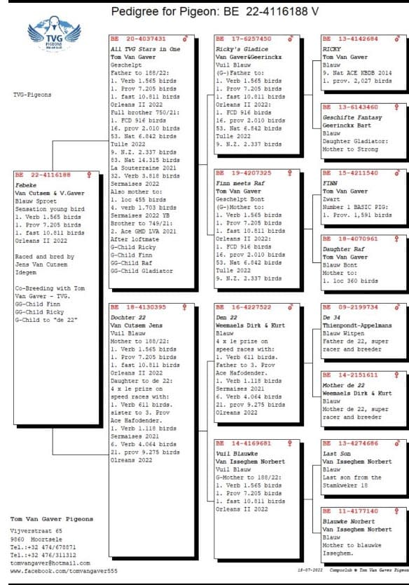 The reason why we did pay a visit was because last weekend Jens could write the provincial victory against 7.205 young birds from Orleans on his palmares. His Scheldt hen "B22-4116188" was not only first in her category but also the fastest out of 10,811 pigeons. A well deserved victory!