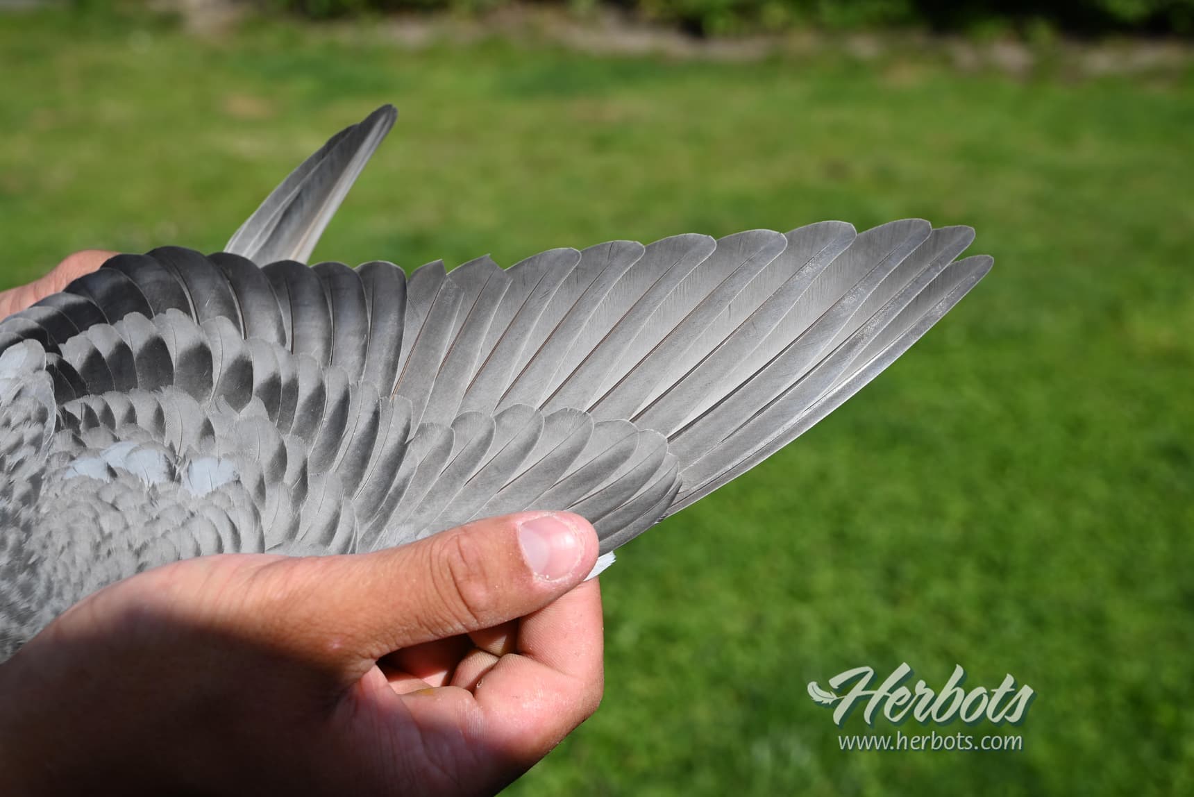 The youngsters are darkened from half March till half June. Afterwards, there is no exposure, but the tip of the 1st and 2nd pinion are cut off at all pigeons. This also postpones the moulting of the wingfeathers.