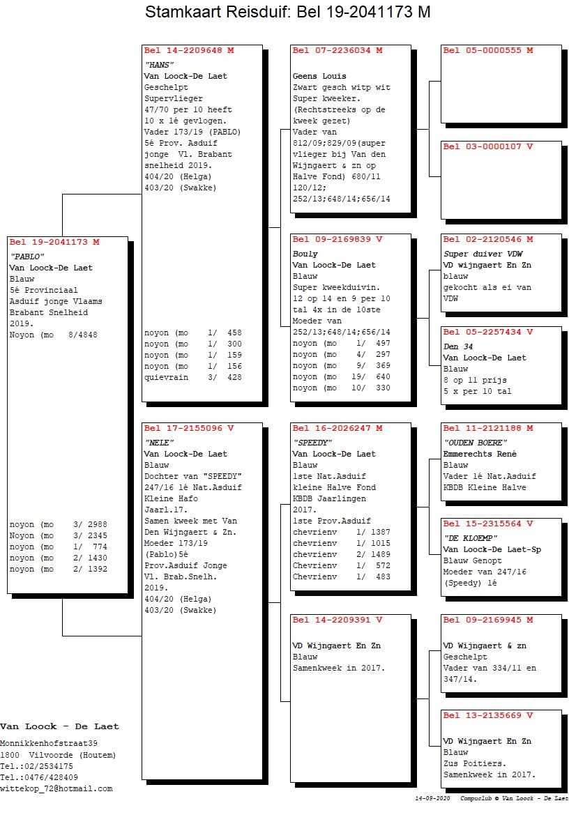 Son to “BE 11-188” Blue Rene Emmerechts x “BE 15-564” De Kloemp