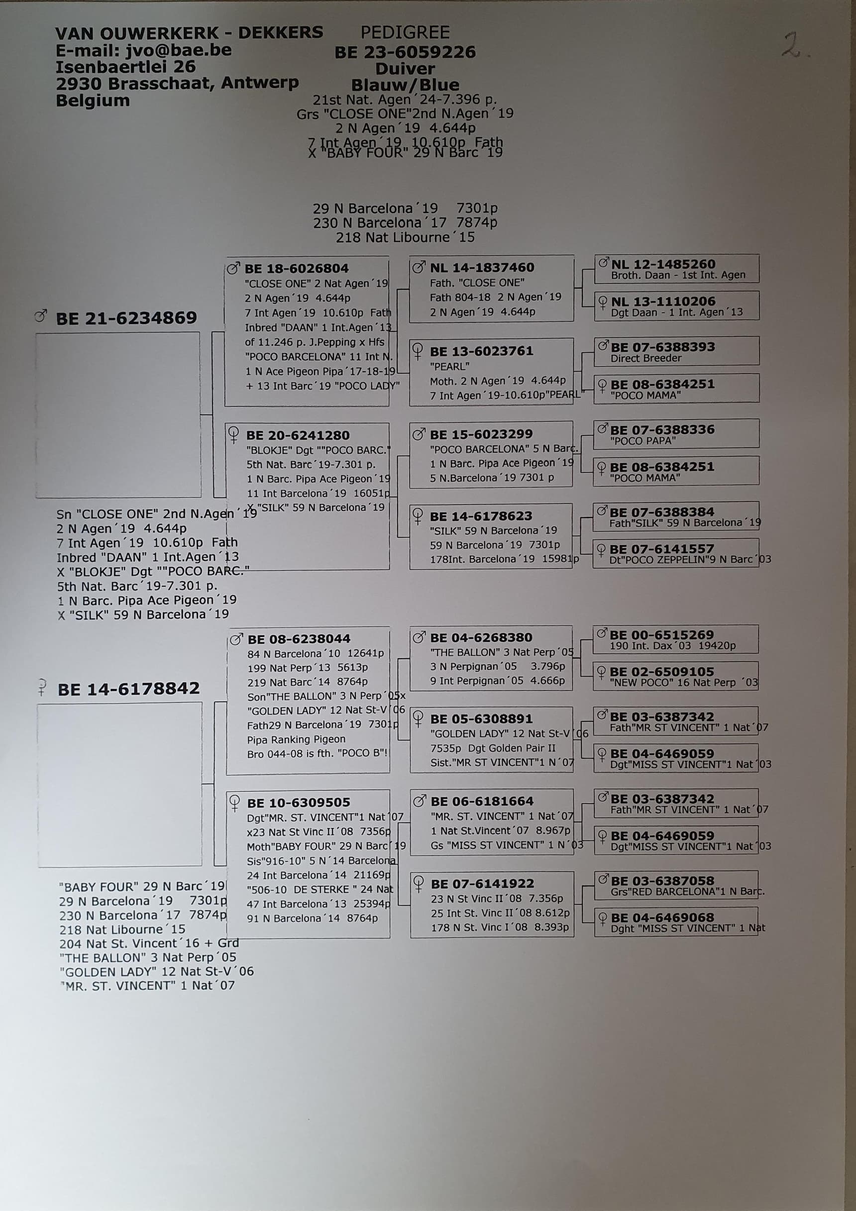 This pigeon hereby took the 5th prize at provincial level and thus became the 21st pigeon nationally among the yearlings out of 7,396 pigeons
