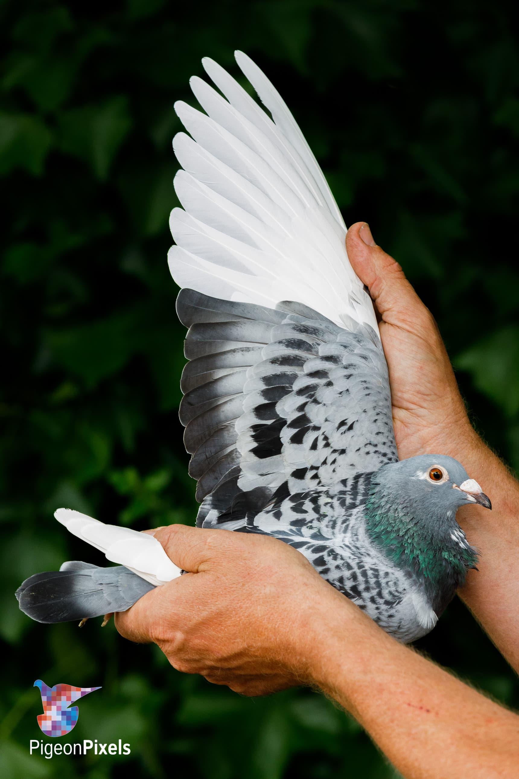For Walter van der Meulen, Barcelona 2023 is his third national win. The other two were achieved in the sector south and were on Dax in 2004 and Bergerac in 2019. In 2004, that was still with a hen obtained on a voucher from the Nobels Achthuizen family. Walter van der Meulen plays the midday discharges of his department and a number of ZLU flights. On Barcelona, he has managed to score a wonderful palmares over the last 10 years and the highlight is of course the national victory now. This year he went to Barcelona with 14 pigeons and after 5.21 he managed to clock the following pigeons at 8.53, 9.53, 10.09, 11.57, 12.03, 12.58 and 13.30 And Sunday afternoon 12 of the 14 were back. At the same time as Barcelona, Walter also had 10 pigeons on Dax and let that flight be a big disappointment with two prize pigeons clocked at 12.11 and 13.58. Walter can't explain it either and sees it as the mystery of pigeon racing. Sometimes it goes very well and sometimes less? And the question why is often unanswerable. The winning hen NL20-2024760 'Bonte 760' was played on two (shorter) midday flights as a yearling and she missed correctly twice. However, she did come back very fresh and fruity each time and that is a big plus for Walter and often a sign that they have substance. Last year she went to Barcelona for the first time and won prize 165 nationally and his was then Walter's 5th pigeon and with 39 along he scored 17 prizes at Barcelona in 2021. And so after the 165th prize she now takes the gold in the Netherlands and internationally she is also early with the 8th prize and ahead of all Belgian Barcelona pigeons. Her father is a 2018 cock and he is Walter's 2nd pigeon on this Barcelona and will go on to win the 48th prize nationally. And this cock went to Barcelona for the first time and already flew several good prizes in the long distance the years before. Among his grandparents, we see the sire of the 1st nat. Bergerac 2019 and the mother of the 1st nat. Barcelona 2018 which Jacky de Bruine won in Nieuwerkerk with a cock that came directly from Walter and was therefore named after him.