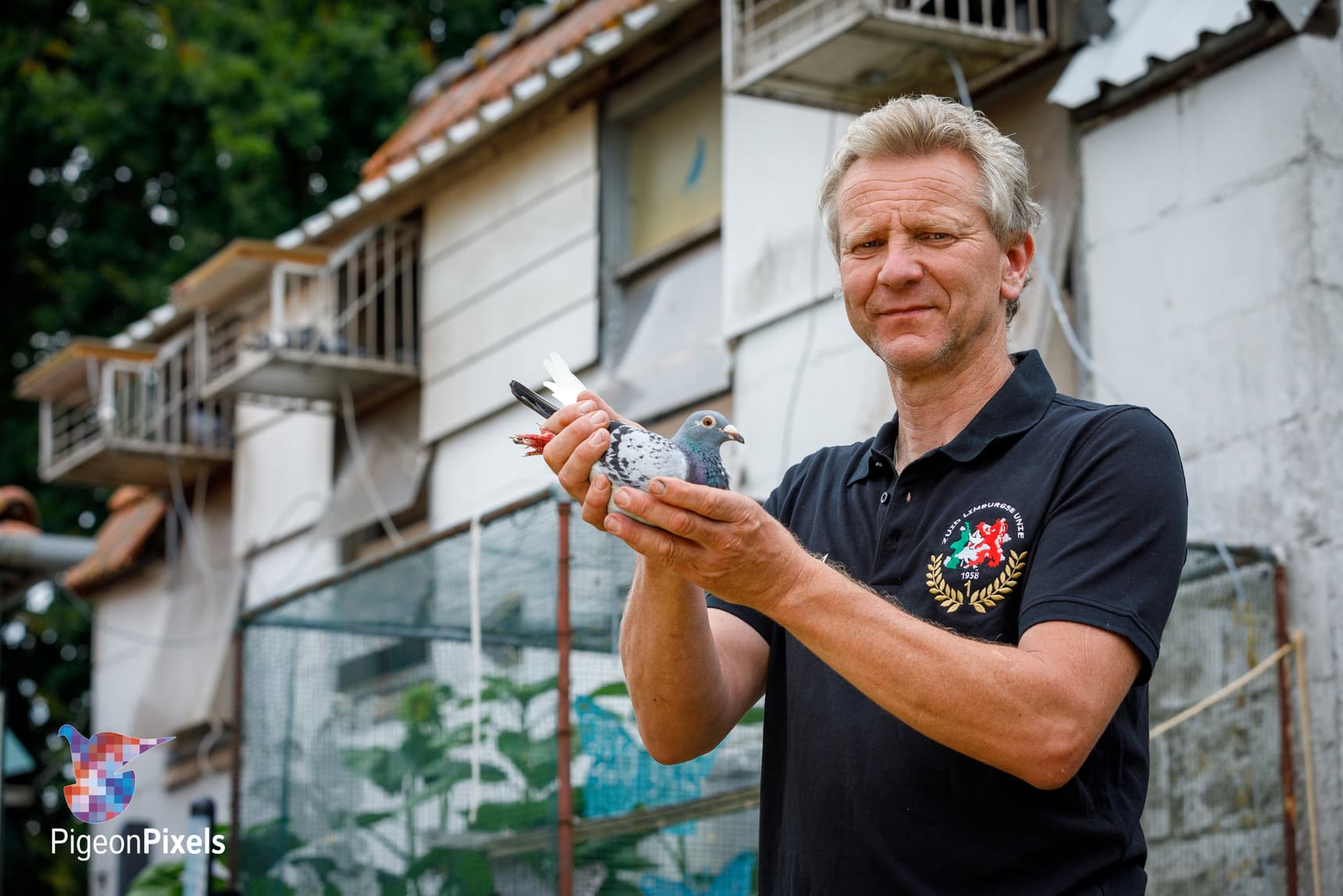 The van der Meulen family is originally from Dordrecht. The 1953 flood disaster caused Walter's grandparents to move to Sirjansland. In Dordrecht in 1953, the van der Meulen family welcomed people from Sirjansland in Zeeland who had lost their homes due to the floods. These later went back and through friendship, the van de Meulen family also went to visit Sirjansland and came up with the 'idea' to live there. The now 54-year-old Walter cleverly bought his current home as a 19-year-old and the house was then in poor condition with even a stacked foundation and therefore cracks everywhere and was built in 1870. Many renovations have embellished the house over the years. A garage was later built next to the house with an attic for pigeon accommodation. But it never housed a car. Above it, Walter has three wards for some 30 nesting couples. The garden loft contains four departments and on it there is room for 30 racing couples, among others. And this garden loft is very old and originally belonged to an uncle of father Aart v.d. Meulen at van der Spoel in Ridderkerk. The front is now in need of replacement. The Barcelona pigeons left on youngsters of 5 to 7 days and they have been played in separately. With a view to the first long-distance task, the pigeons are paired. After a flight, the nest is broken off and an attempt is made to get them back on that nest position on the next assignment. The successful Barcelona pigeons will not get a second flight this season. Walter prefers to play entire divisions on a particular flight. Before the long distance season, the pigeons were treated with tricho-cocci from Travipharma for 6 days and two weeks before a long distance flight they get that for 2 more days. In Walter's strain there is a lot of Ernest blood and that is from Jan Ernest from Steenbergen. An Ernest hen from '97 played an important role paired with two Hausouldoffers obtained via Jacky de Bruine and Hans Matthijsse. The Ernest blood also later came from brothers Paul and Luc Bramel of Loerbeek. Paul Bramel 'descended' to Sirjansland on Saturday morning and saw another hefty number of Barcelona pigeons arrive.