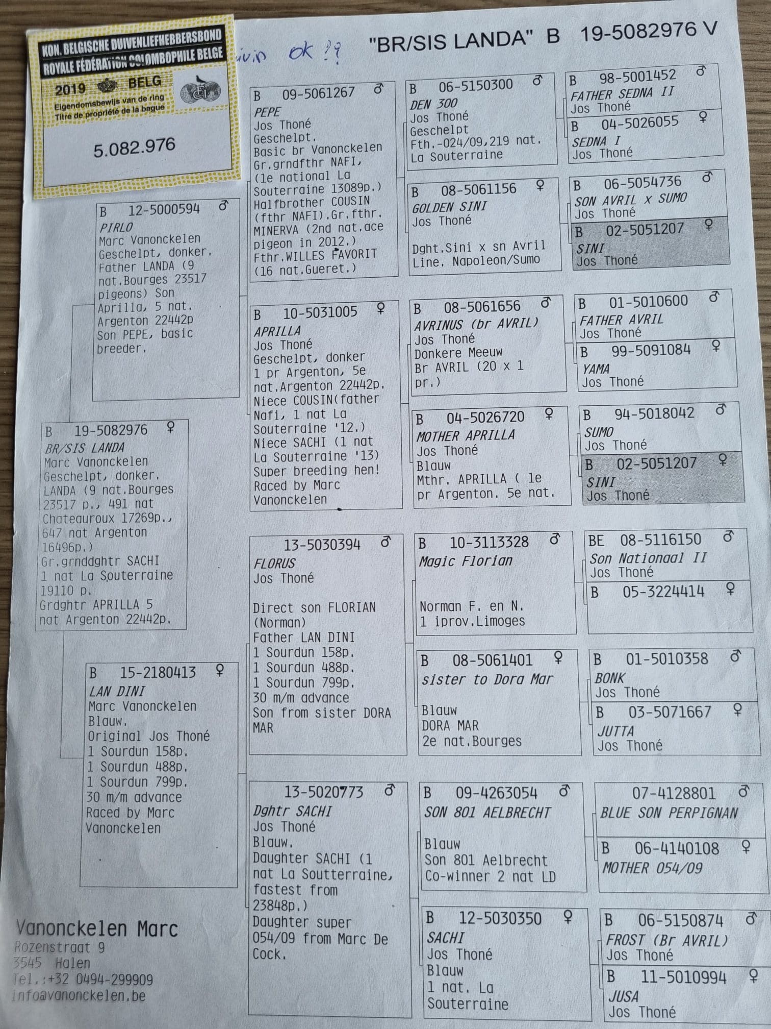 In terms of training, the youngsters were taken away at 2km, 5km, 20km and then it went 2x to Fleurus. They flew 3x Momignies, 3x Soissons, 1x Nanteuil, 1x Sermaises and now Orléans. After Orléans, which was also not an easy race, they flew Momignies to regain confidence and to give the pigeons some rest for Bourges. Every week, the youngsters were raced 1x extra up to 50km, but he no longer intends to do this from Bourges.