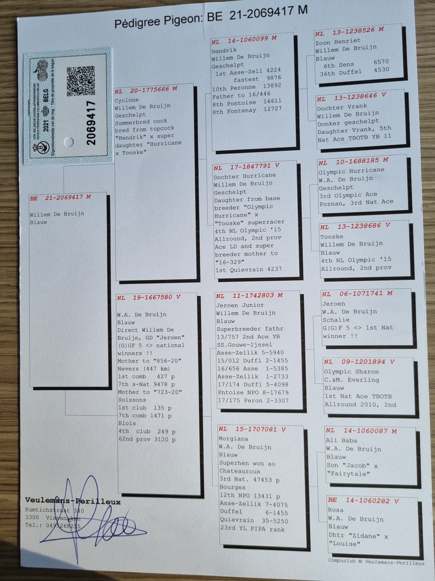Son from “Hendrik” 1st Asse 4.224b ( fastest from 9.876b ) x “Daughter Olympic Hurricane”
