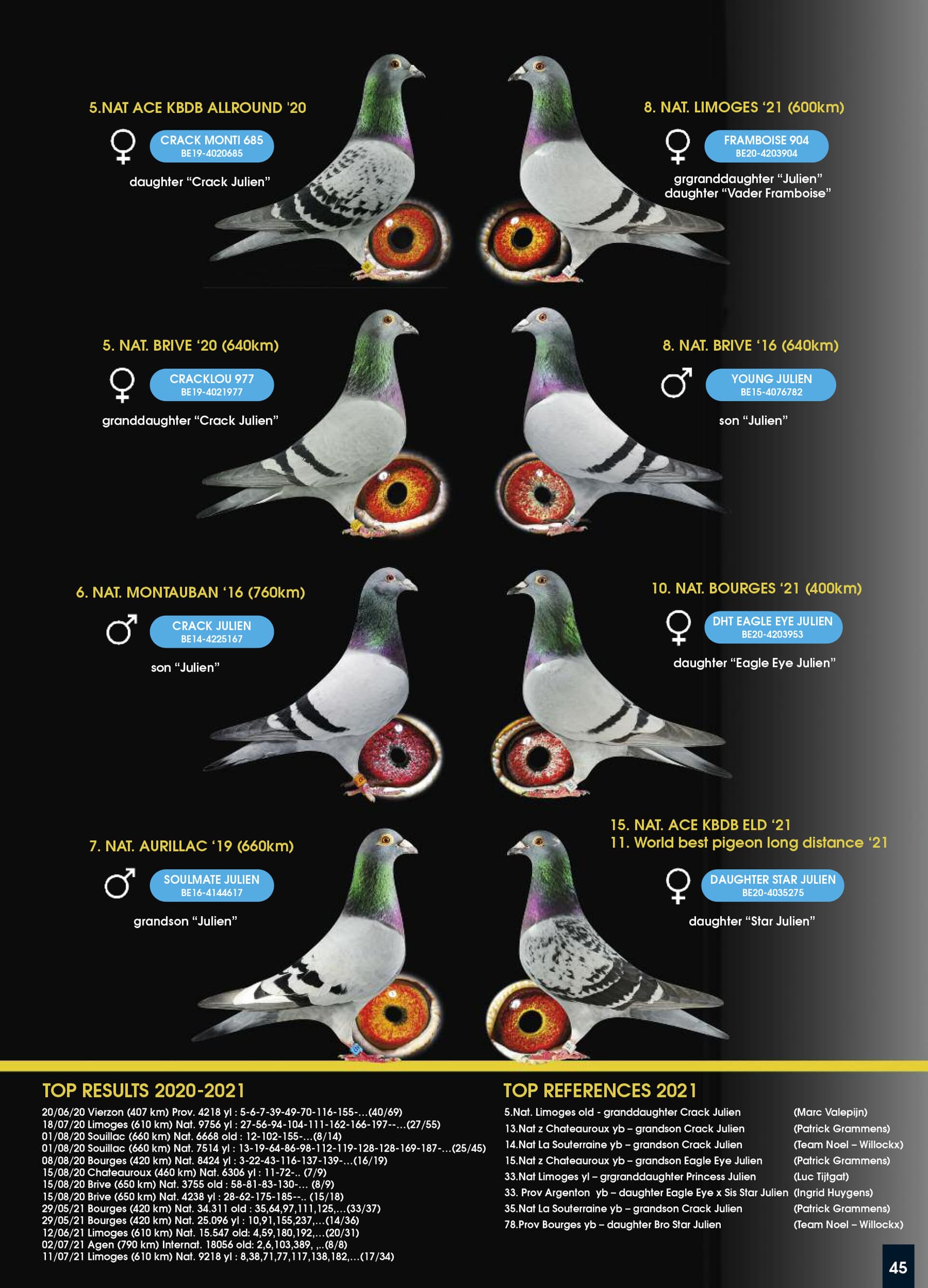 Julien doesn’t fertilize anymore in the meantime but his high breeding value is showing in his children and grandchildren. The past 2 season national top was raced with children and grandchildren.