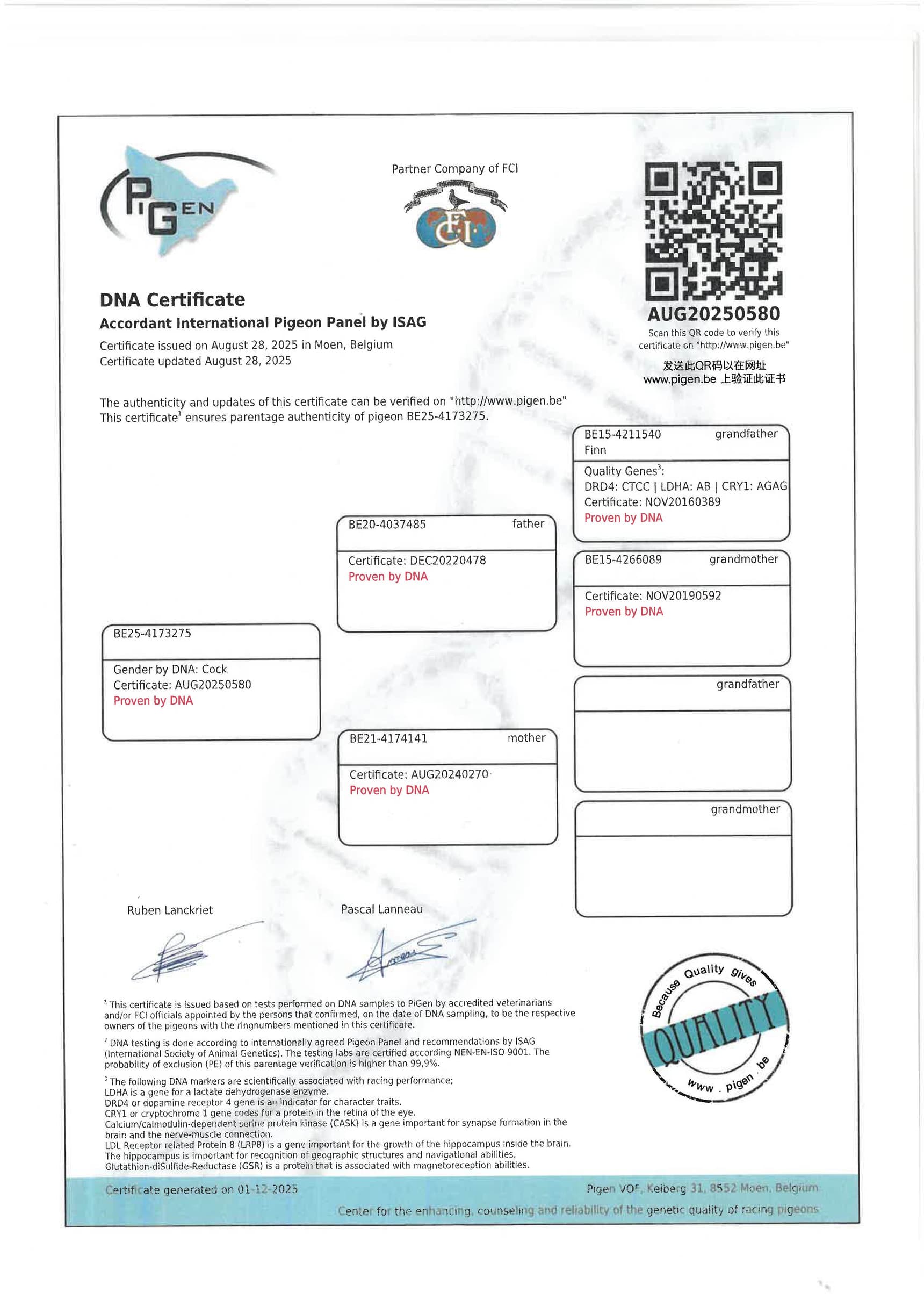 Breeder: VAN GAVER PIGEONS TOM