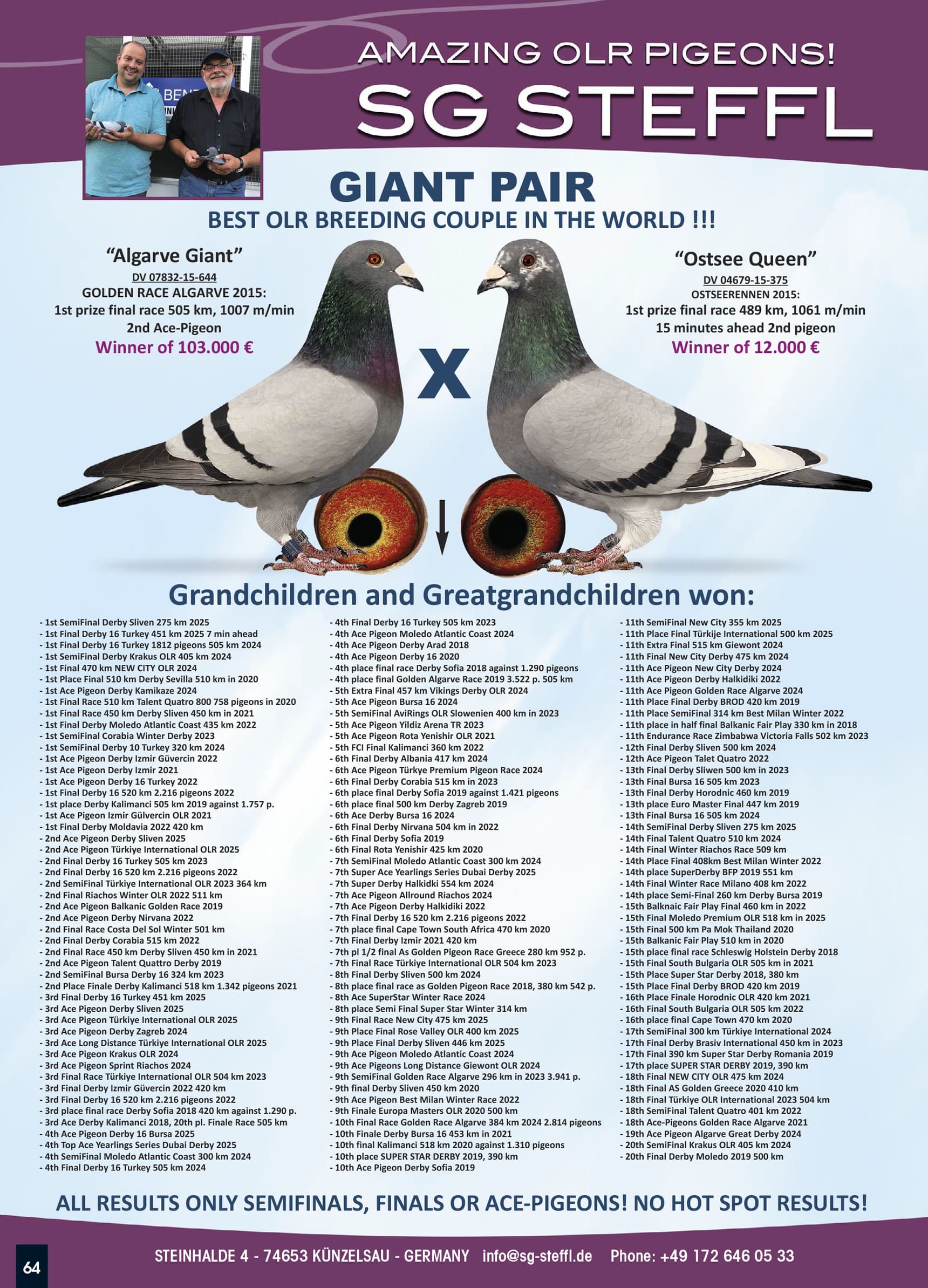 Won 7 prizes on 7 races with 643 ace bird points
