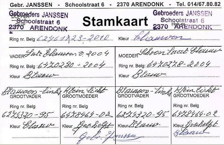 Father: “Luxe Blauwen” B10-6246123 – original Janssen Gebroeders