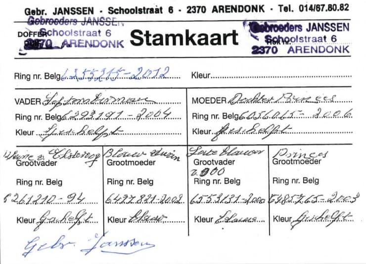 Breeder: 100% Gebr. Janssen - Arendonk 纯詹森兄弟
