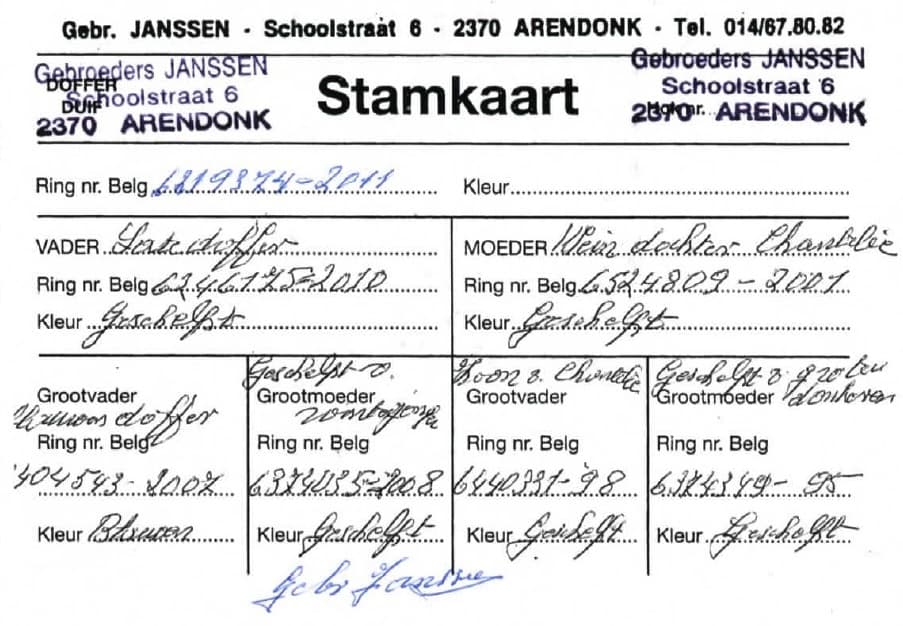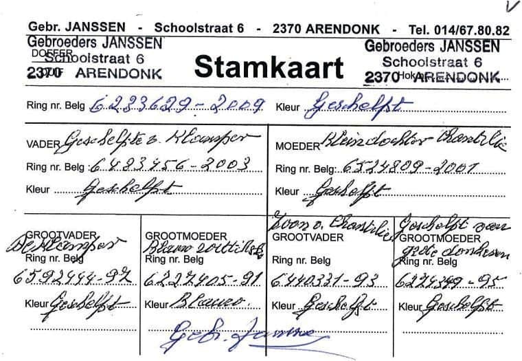 Mother: “Chantilly duivin” B11-6219374 – original Janssen Gebroeders
