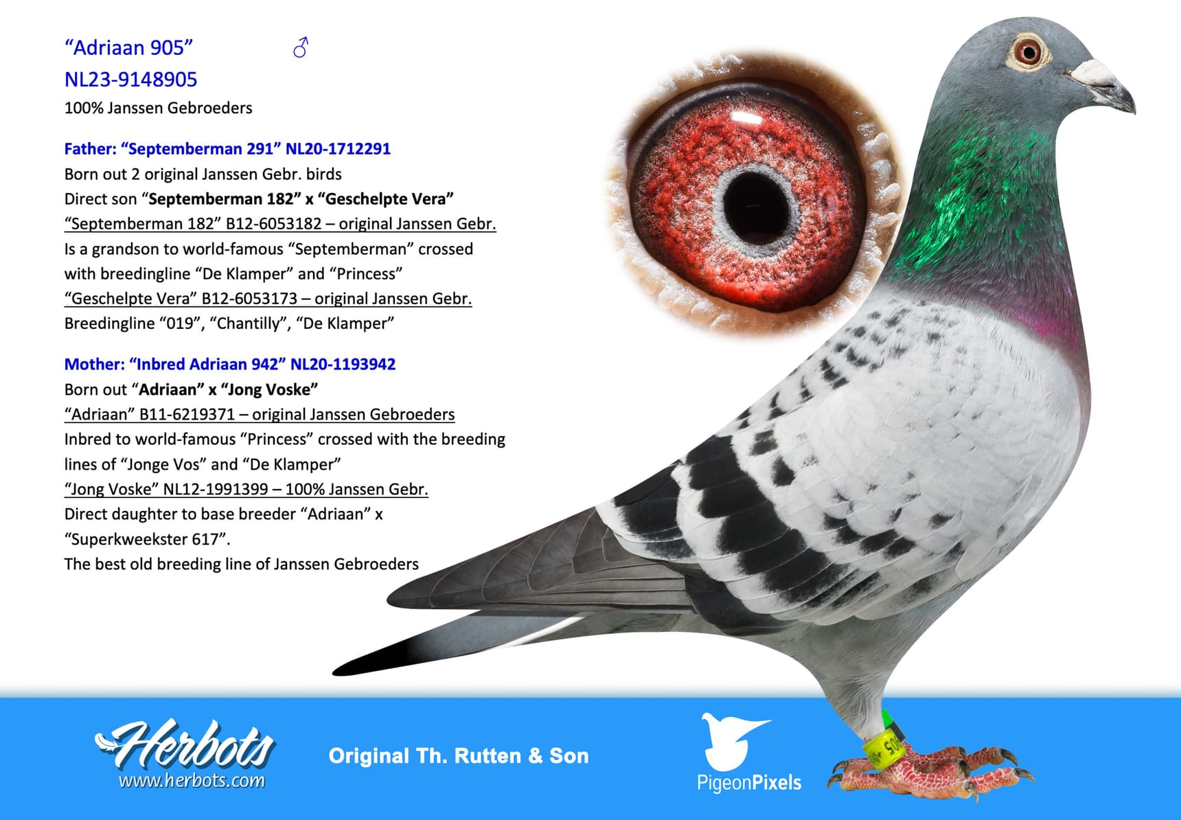 Direct daughter to base breeder “Adriaan” x “Superkweekster 617”.