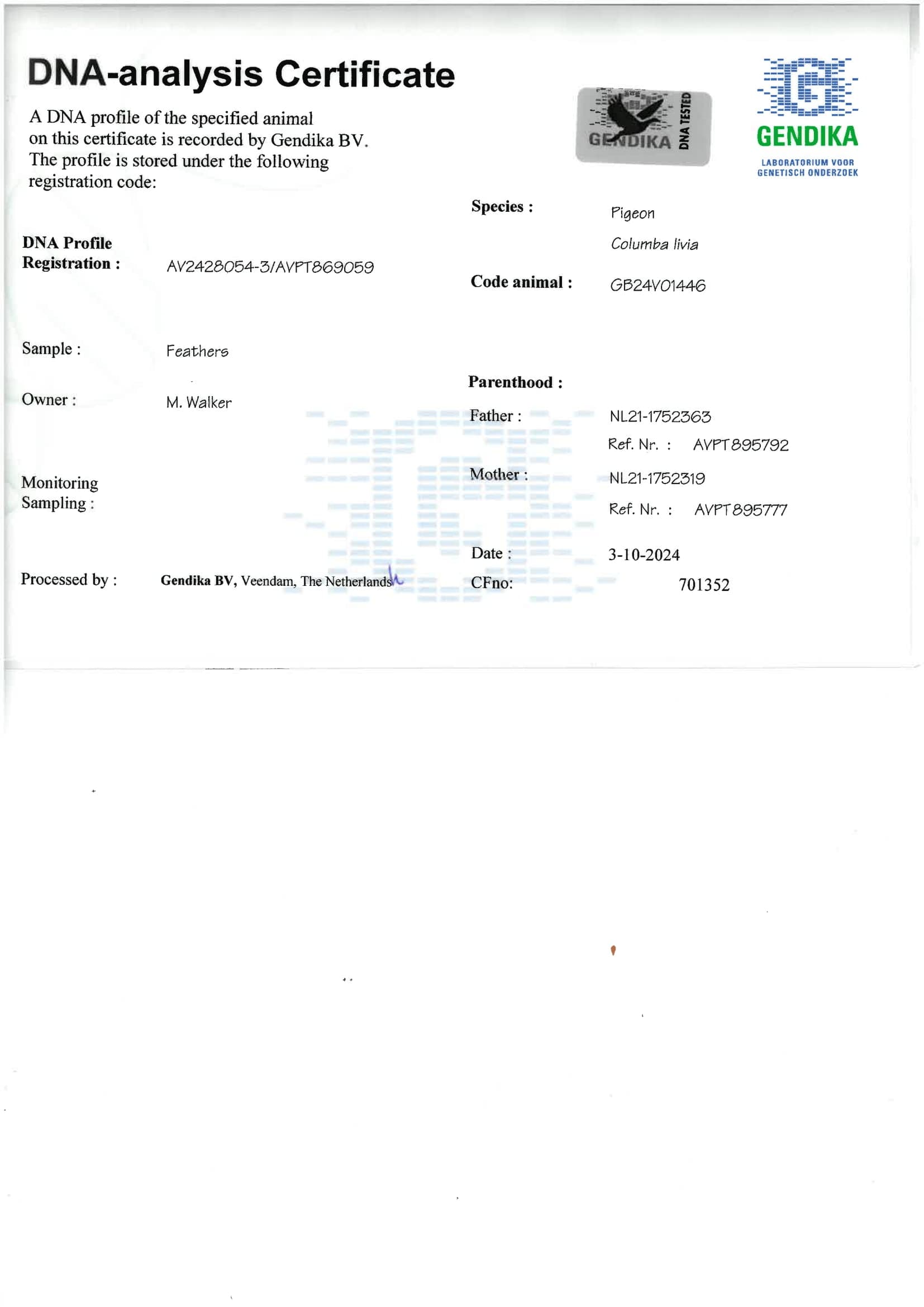 Born out “Patrick” (original Boeckx – breeder of 1-1-2-3-3-4-5-6-6-8 against average 7,900b.) x “Ma Bakker” (grandmother to 1st Nat. ace Germany YB)