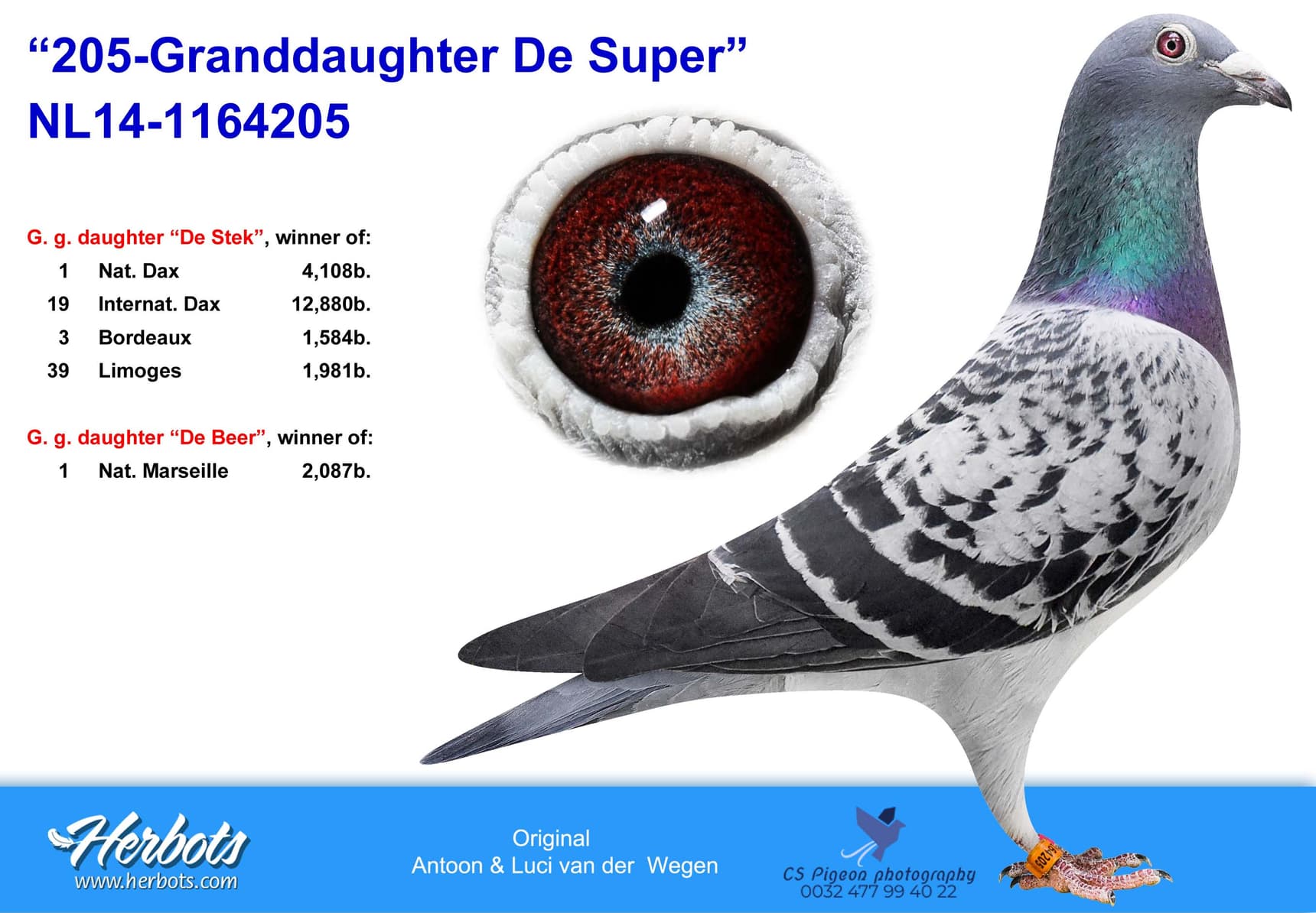 Breeder: 100% VAN DER WEGEN A. & L. 100% 纯范德维根血系